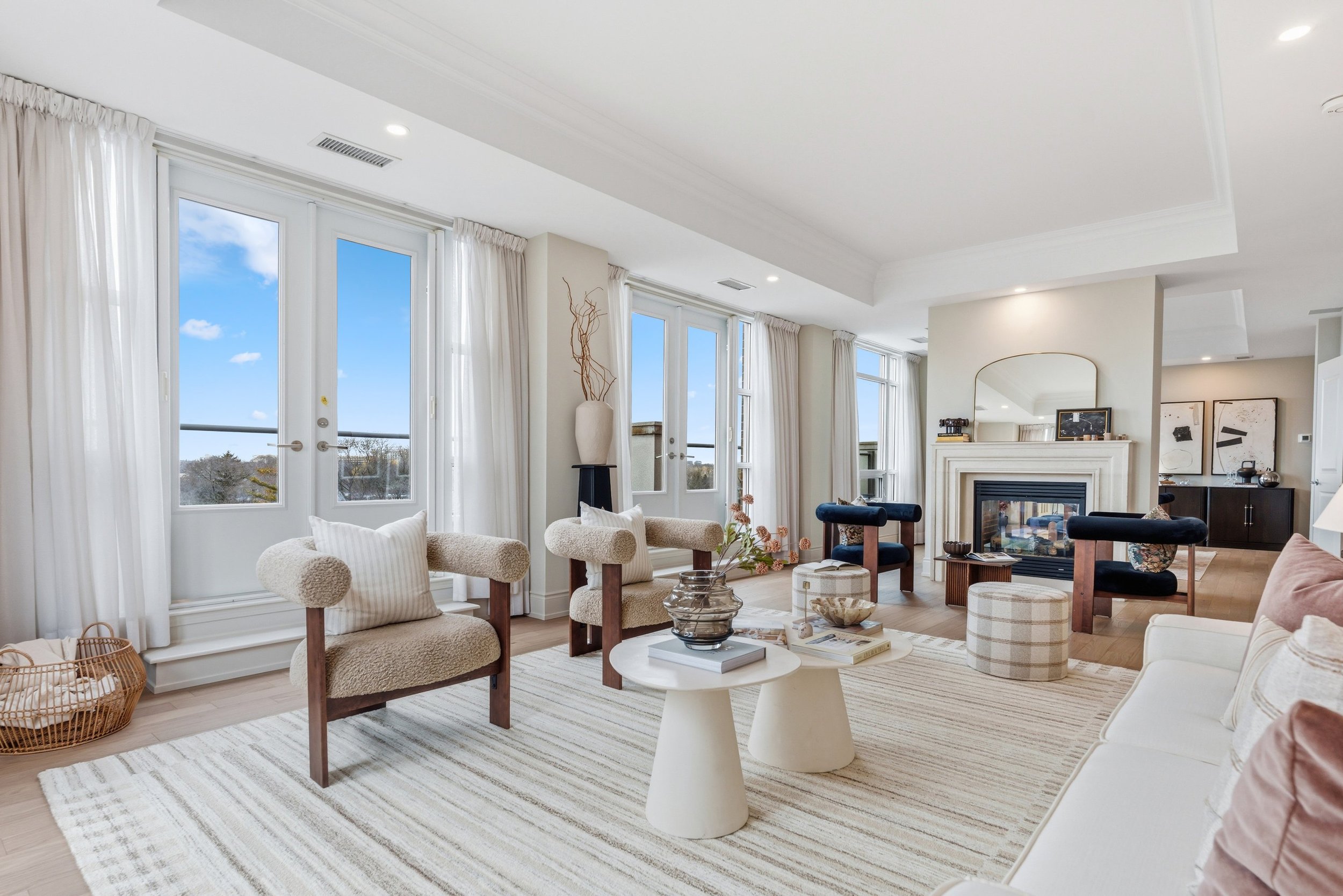 Inside, the suite benefits from the highly sought-after Southwest exposure, ensuring every room is bathed in natural light throughout the day. The architecture emphasizes volume through high ceilings and expansive windows, accented by sophisticated crown mouldings. In 2026, the residence underwent a significant update with the installation of 5” American Oak engineered hardwood flooring, which adds a warm, contemporary texture to the entire home.