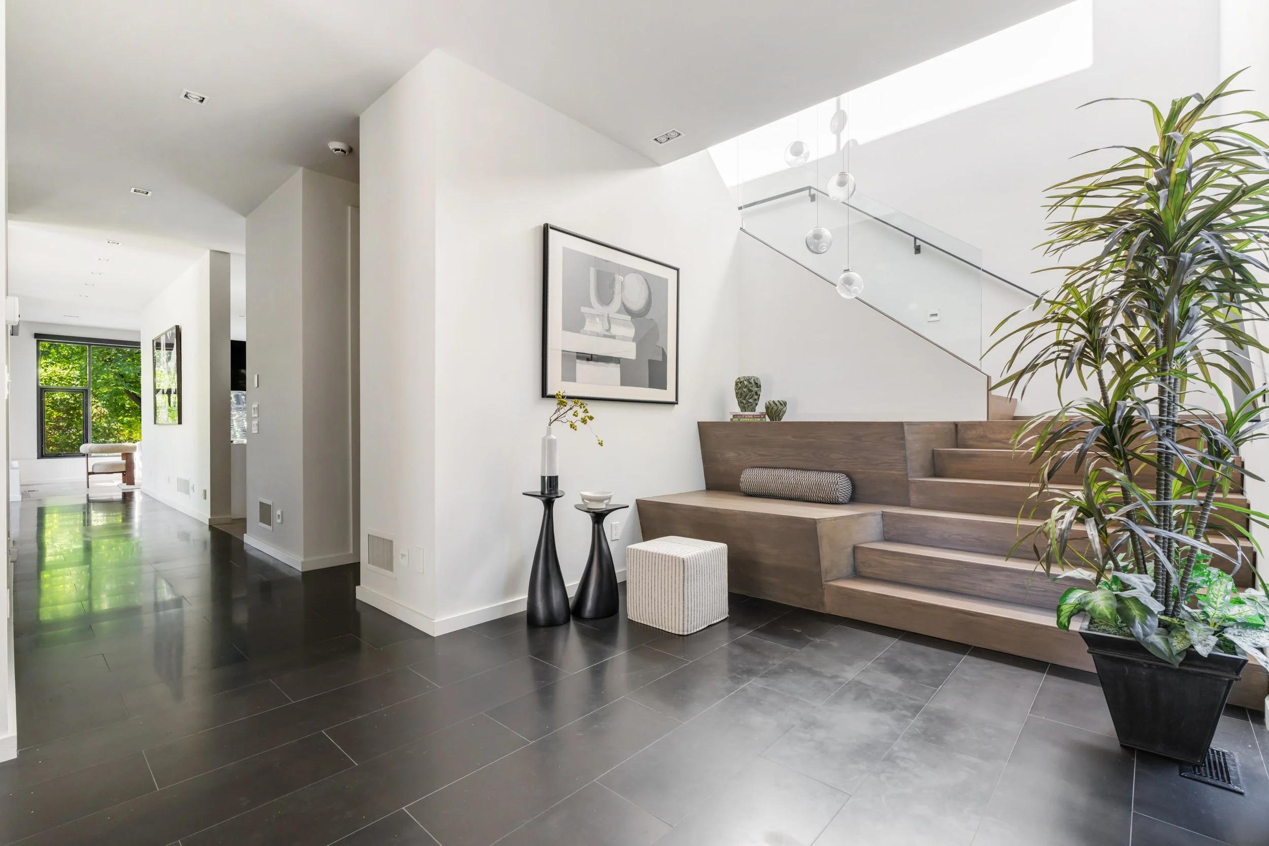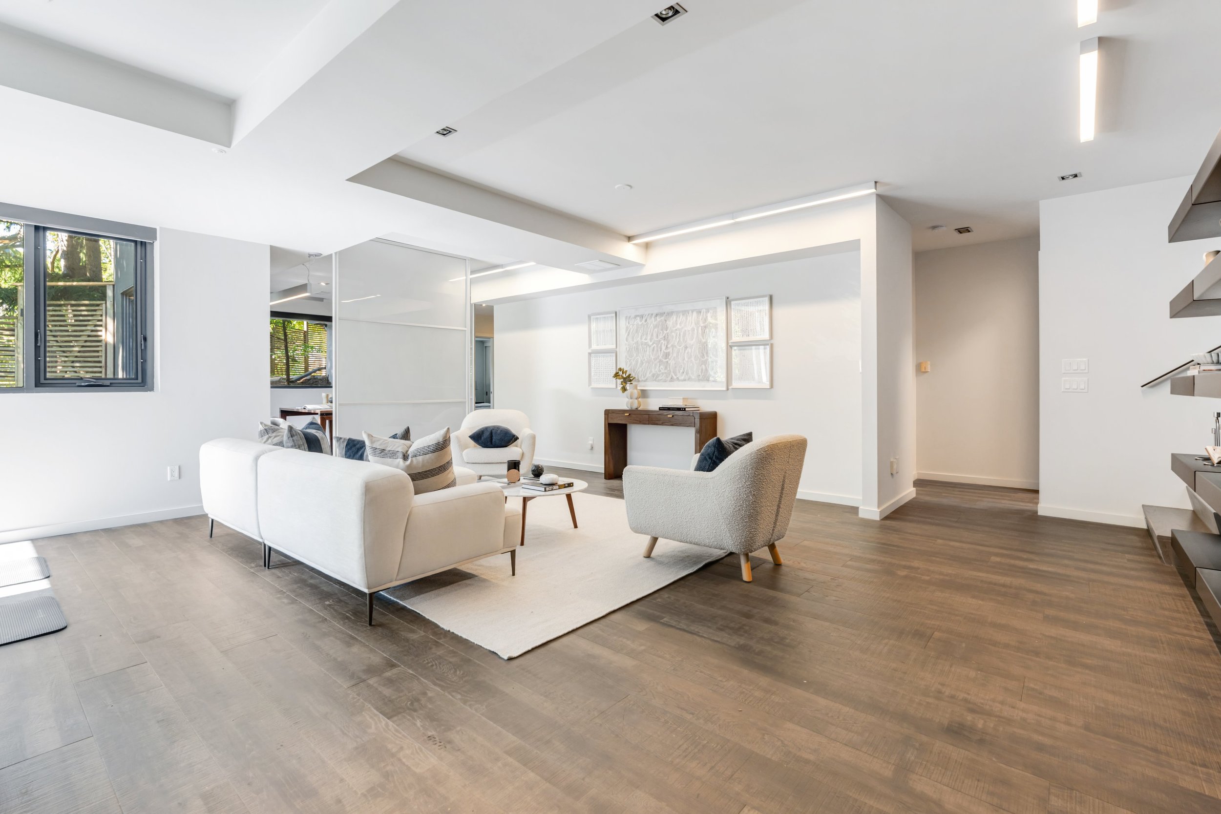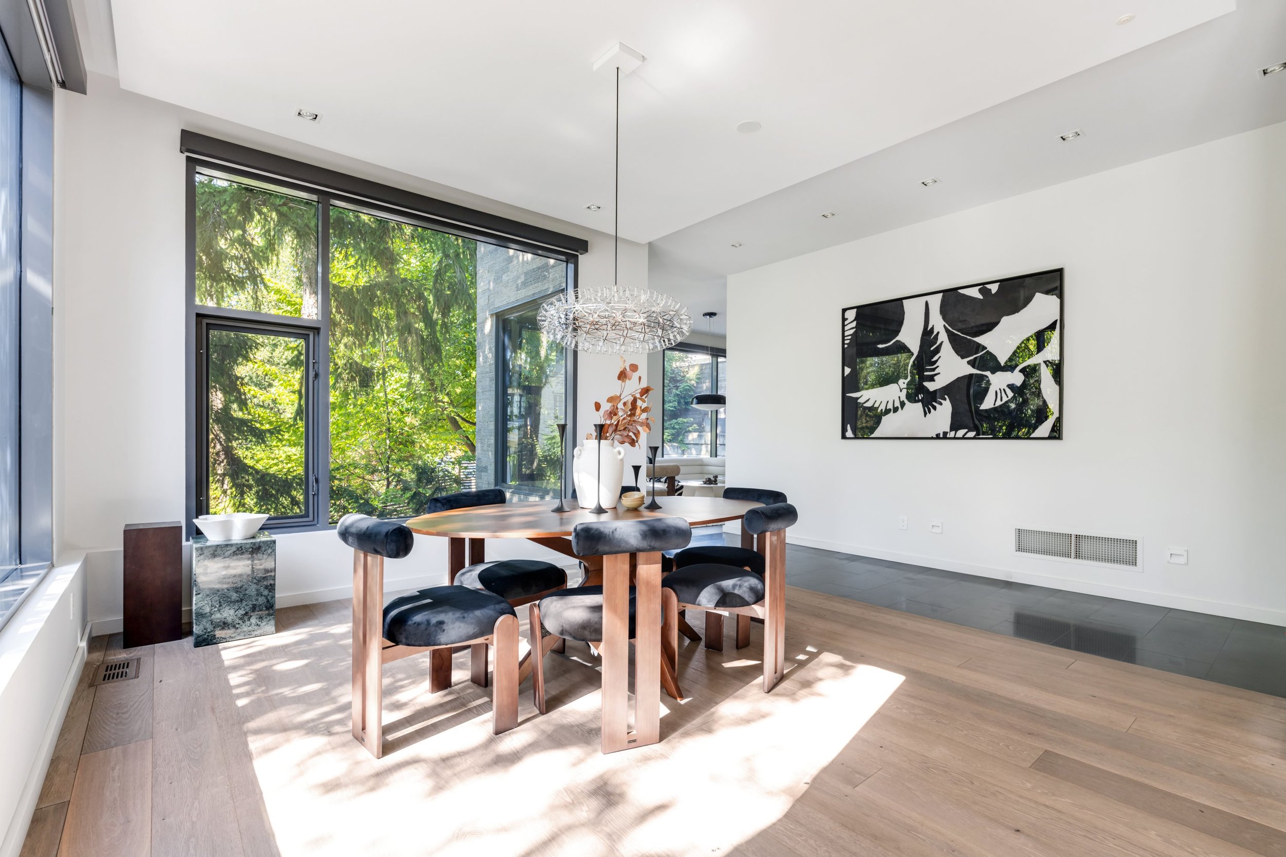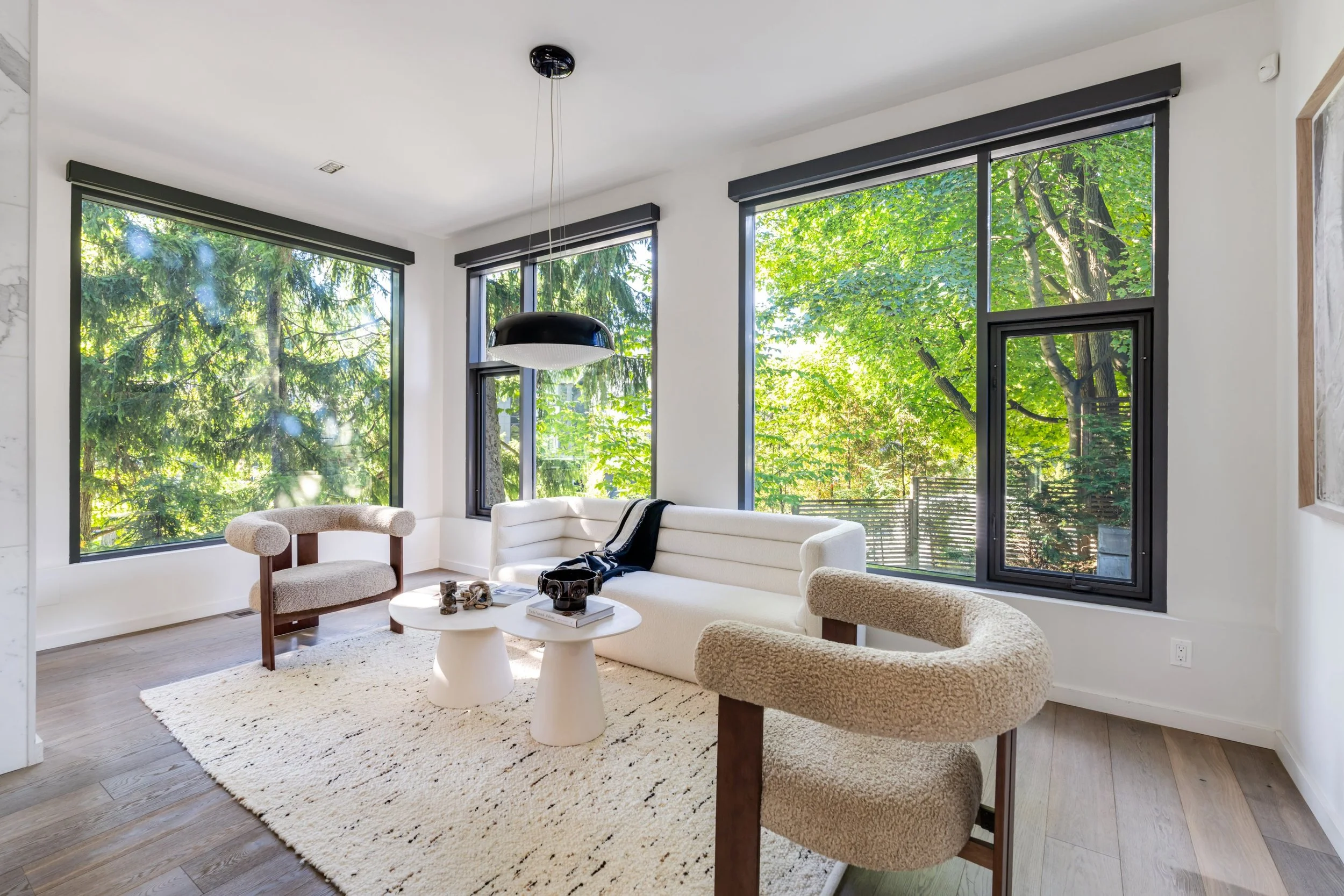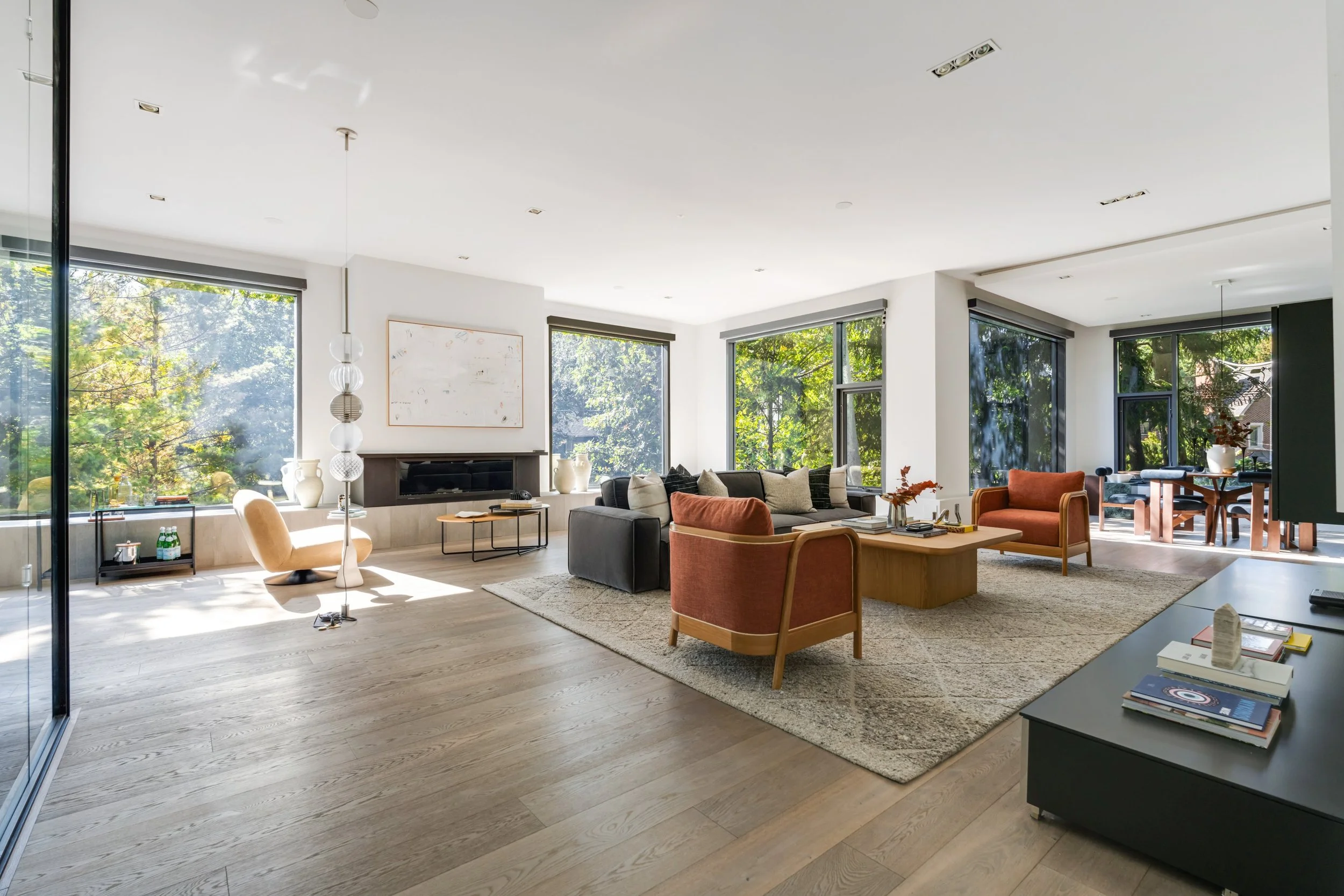The home's design seamlessly integrates cutting-edge features with a practical layout. The nearly 2000 square foot open-concept main floor centres around a chef's eat-in kitchen by Boffi, finished in high-lacquer piano black, and is equipped with top-of-the-line appliances. The living / dining rooms are sumptuously proportioned.