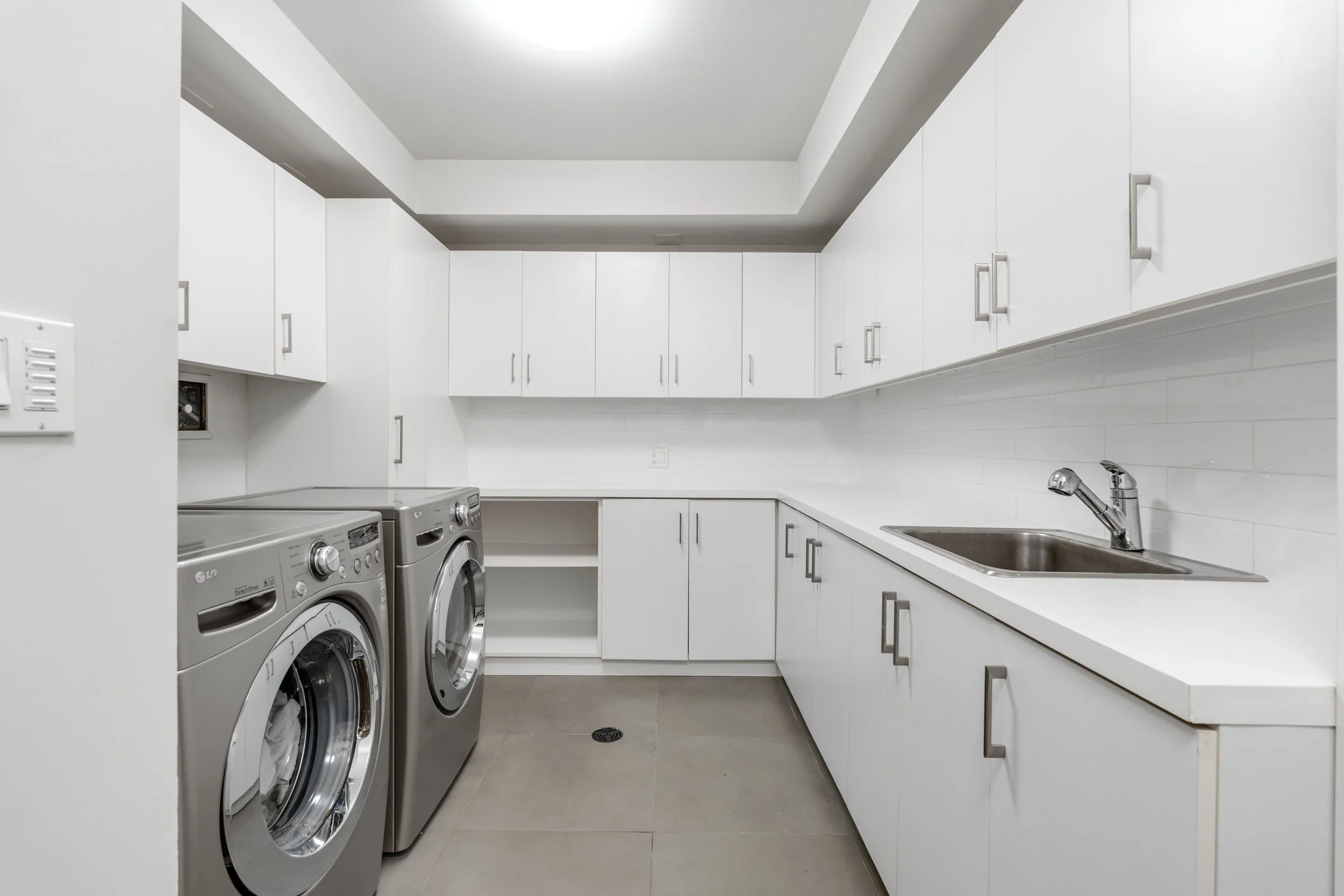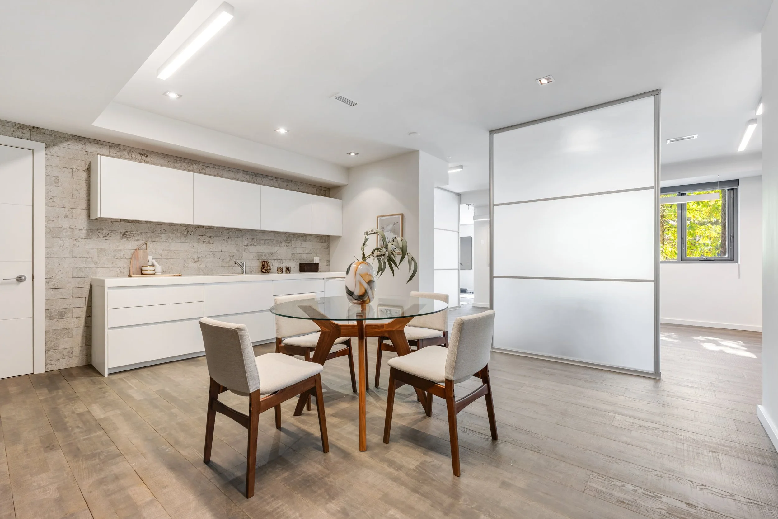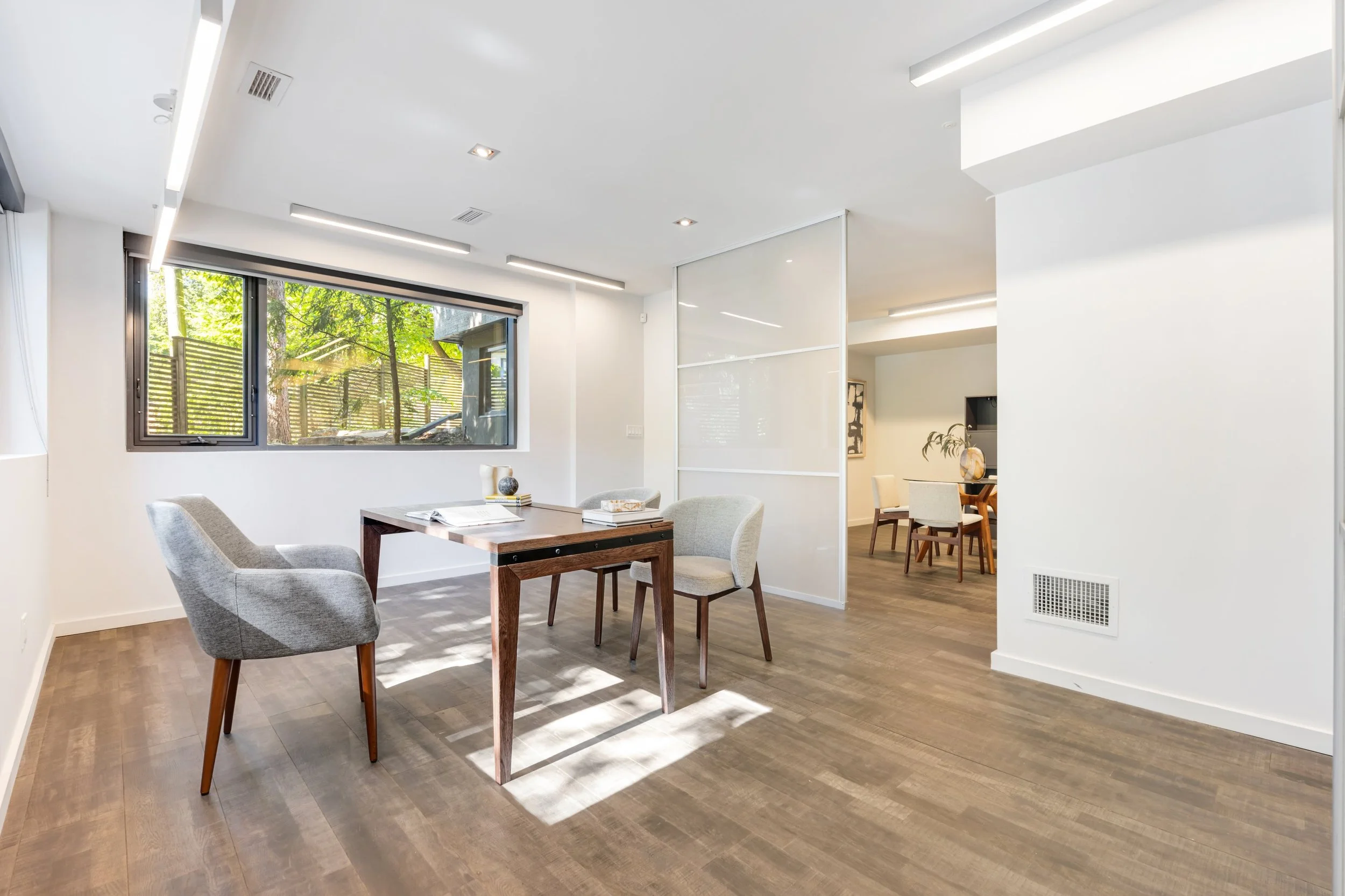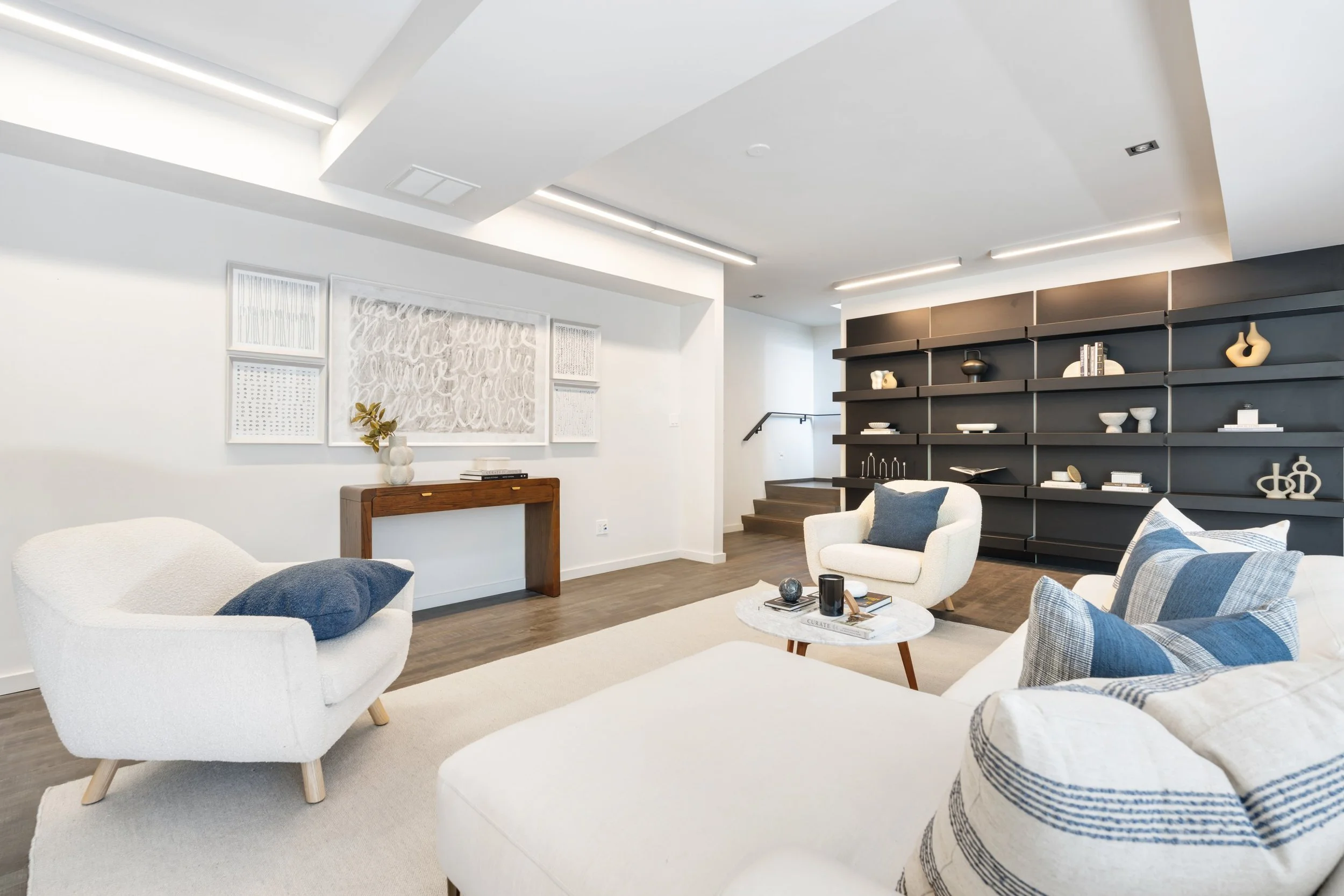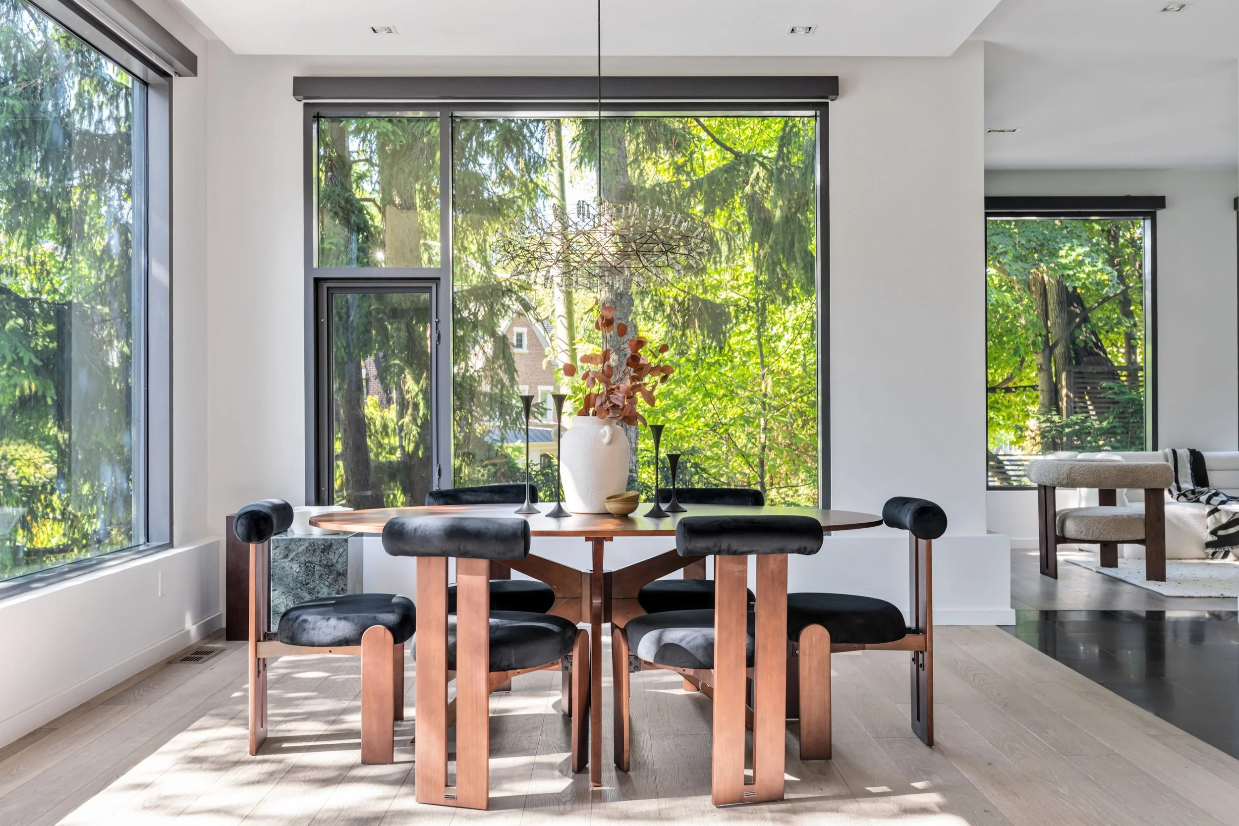 The home's design seamlessly integrates cutting-edge features with a practical layout. The nearly 2000 square foot open-concept main floor centres around a chef's eat-in kitchen by Boffi, finished in high-lacquer piano black, and is equipped with top-of-the-line appliances. The living / dining rooms are sumptuously proportioned.