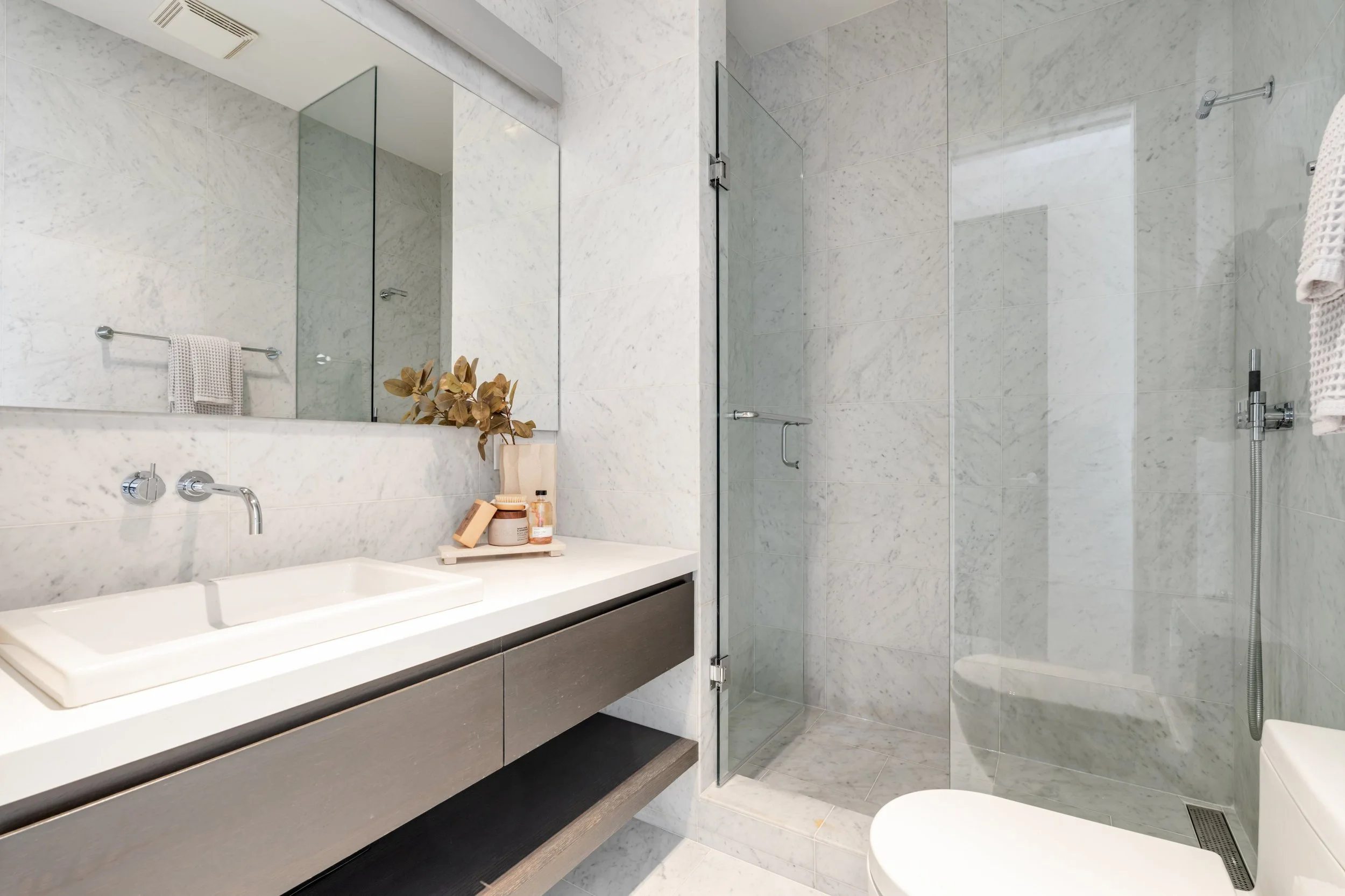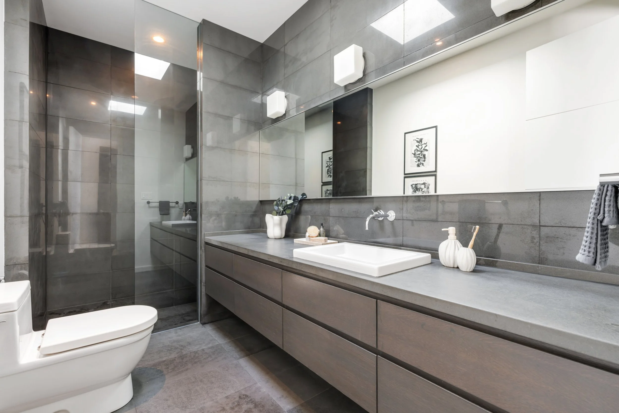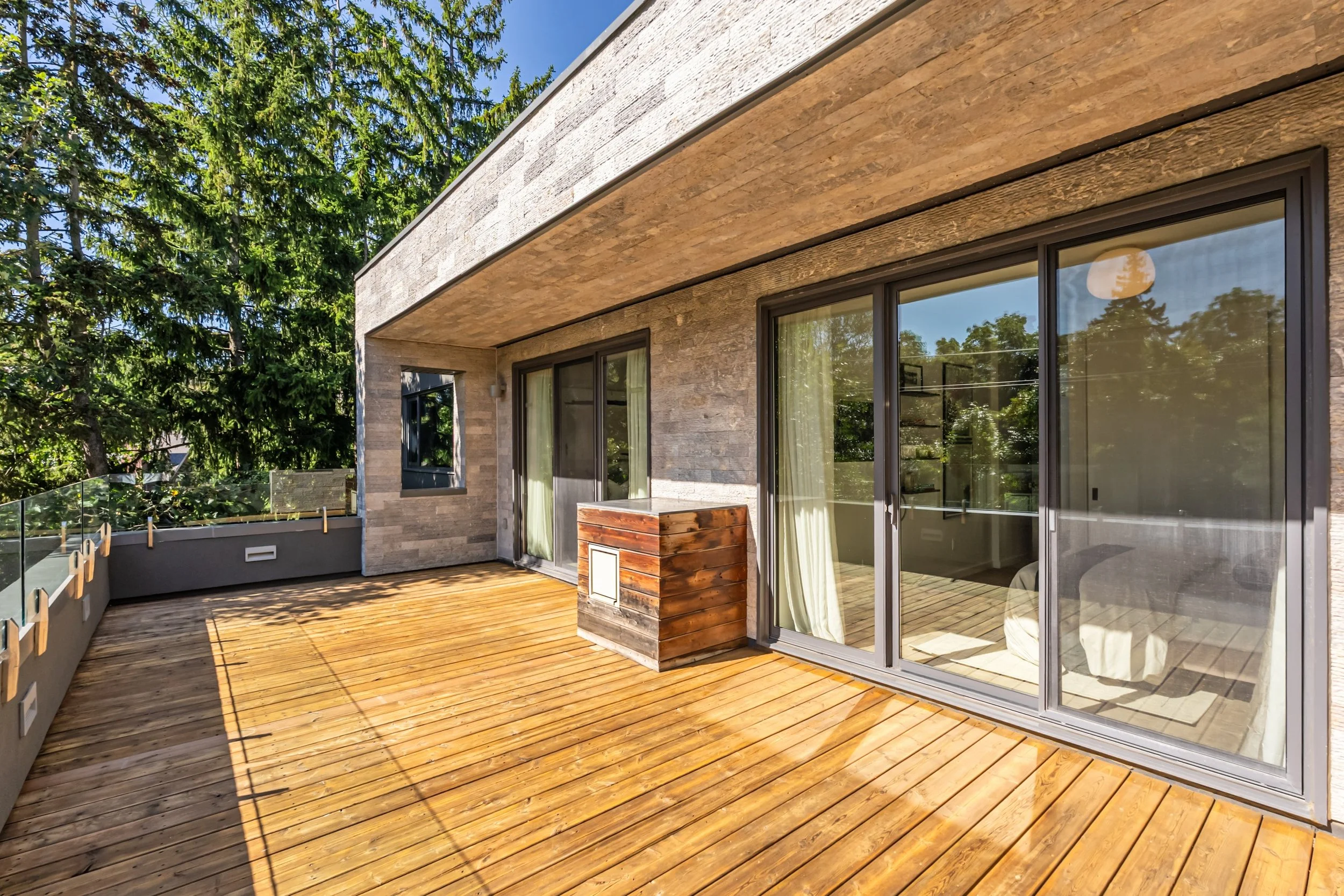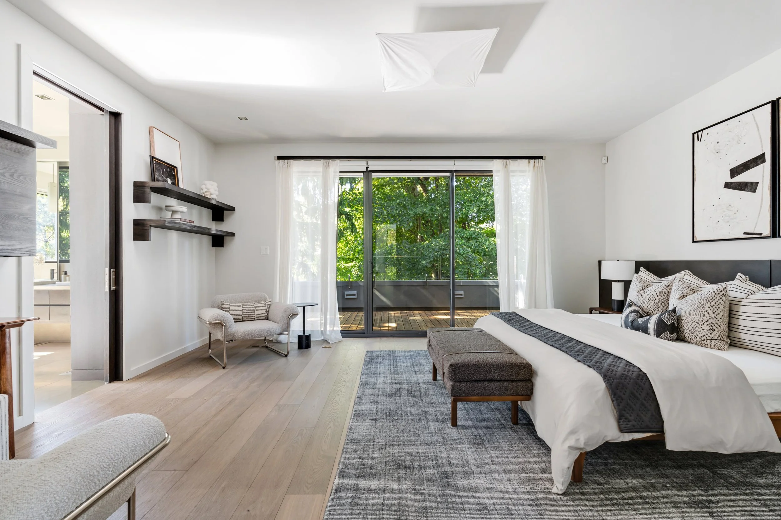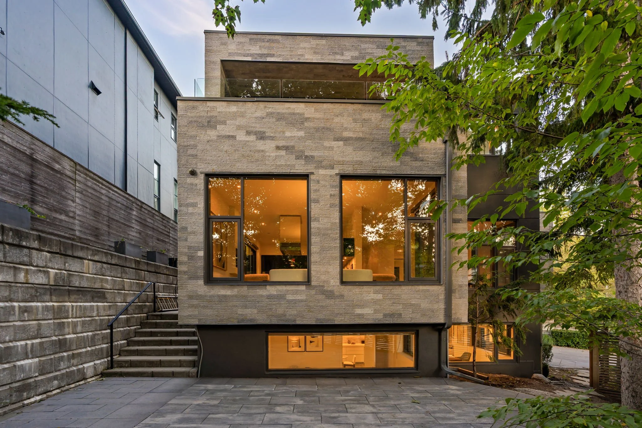 The upper-level features bedroom walk-outs to two incredible terraces and a skylighted reading nook at the top of the stairs flooded in sunlight. Three spacious bedrooms, with ensuite bathrooms and abundant closet space; while the completely finished lower-level benefits from the topography of the land with massive, above-grade windows. A fourth bedroom on this level provides additional versatility. With a double driveway and private entry door, entrepreneurs running a home-based business will adore the flexibility of this level. In fact, this residence has two separate driveways (unheard of in the city)!