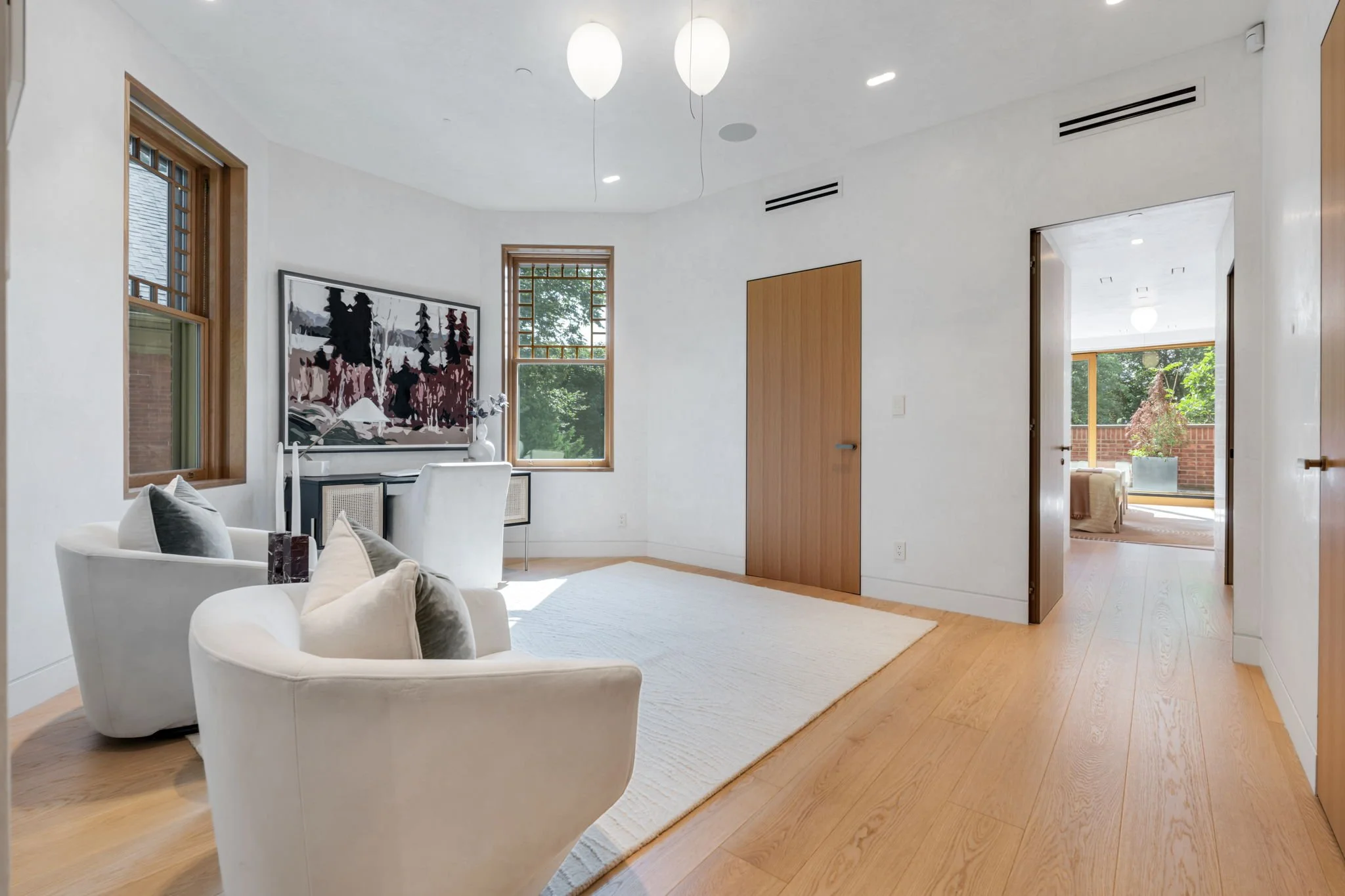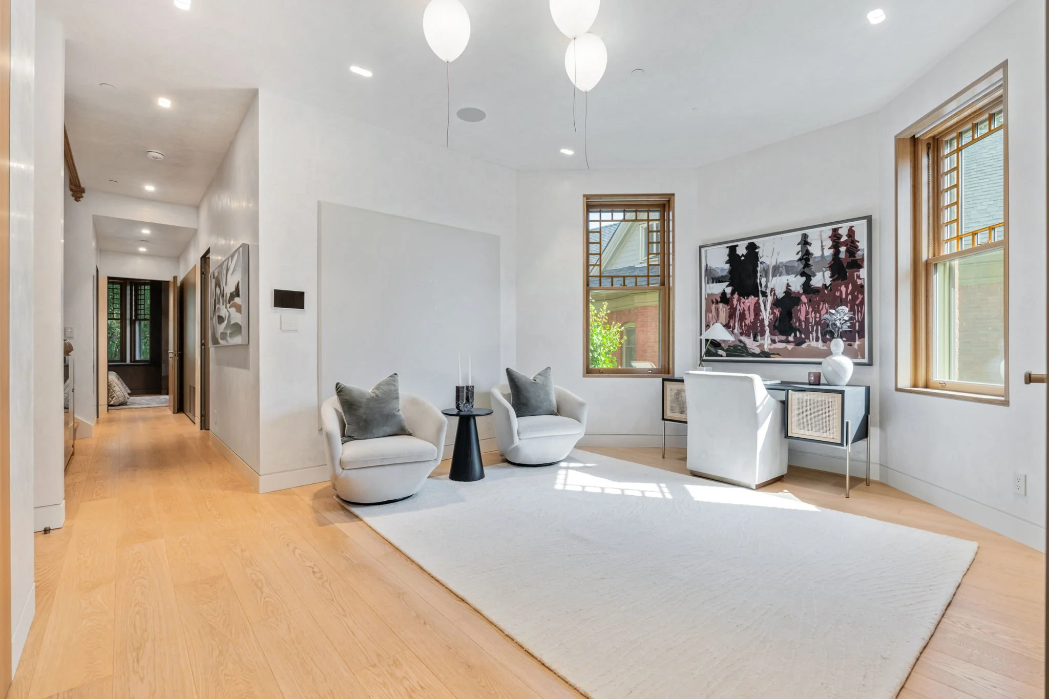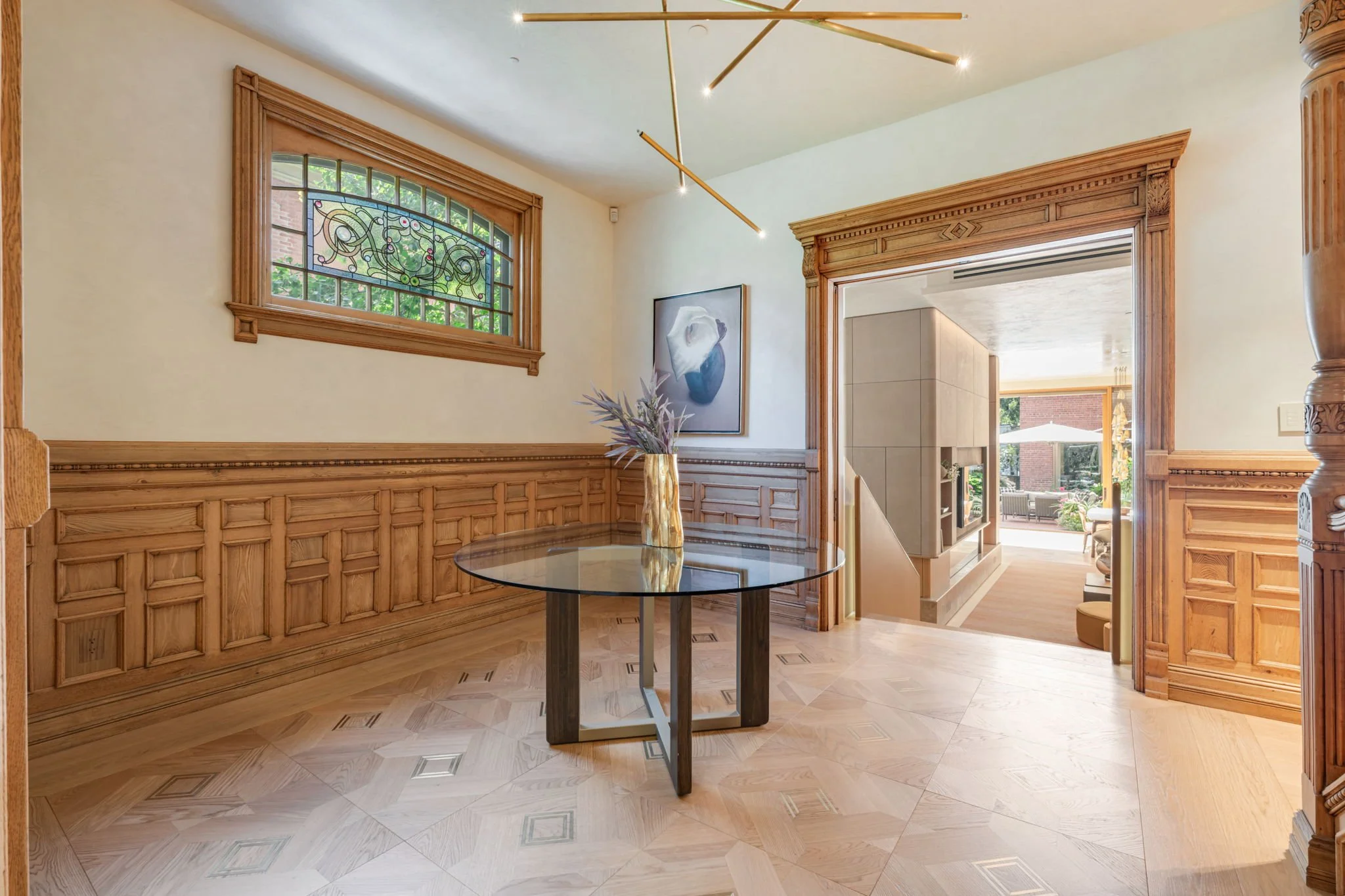 The opulent Queen Anne Revival exterior was preserved and melded with an ultra-contemporary interior renovation, creating a crown jewel of a residence. Jumping right off of the pages of any global interior design magazine, you will be astounded by the flow and appointments throughout. The restored foyer and staircase showcase the home's history, while the rest of the house embraces a contemporary aesthetic with white oak millwork and Roman clay plastered walls and ceiling. A seamless expansion adds five levels of extraordinary living space. The cloakroom, located off the foyer, sets the tone for the home's aesthetic: minimalism and functionality. Descending a few stairs from the foyer, you enter the expansive open-concept great room, encompassing living, dining, den, and eat-in kitchen areas. The chef's dream kitchen by Balthaup design with a full suite of Gaggenau appliances is bathed in natural light thanks to the floor-to-ceiling and wall-to-wall window system. Take the staircase or the elevator to the second-floor where you will find three bedrooms, a family room, and three full bathrooms. The entire 1370 square feet third floor is dedicated to the luxurious primary bedroom suite, complete with a dressing room and marvelous spa-like bathroom with marble tile by Salvatori and walk-out to the rooftop deck. A fourth-floor loft reveals a sun-drenched exercise room tucked away from the rest of the house. The lower level redefines expectations, boasting a media room, kitchenette, and state-of-the-art mechanical rooms. The garage features a vehicle turntable for effortless parking. The property sits on a sprawling lot and includes a fenced-in backyard with a detached pavilion, perfect for a yoga studio or artist's retreat. This outstanding city residence offers a harmonious blend of historical charm, contemporary elegance, and unparalleled comfort.