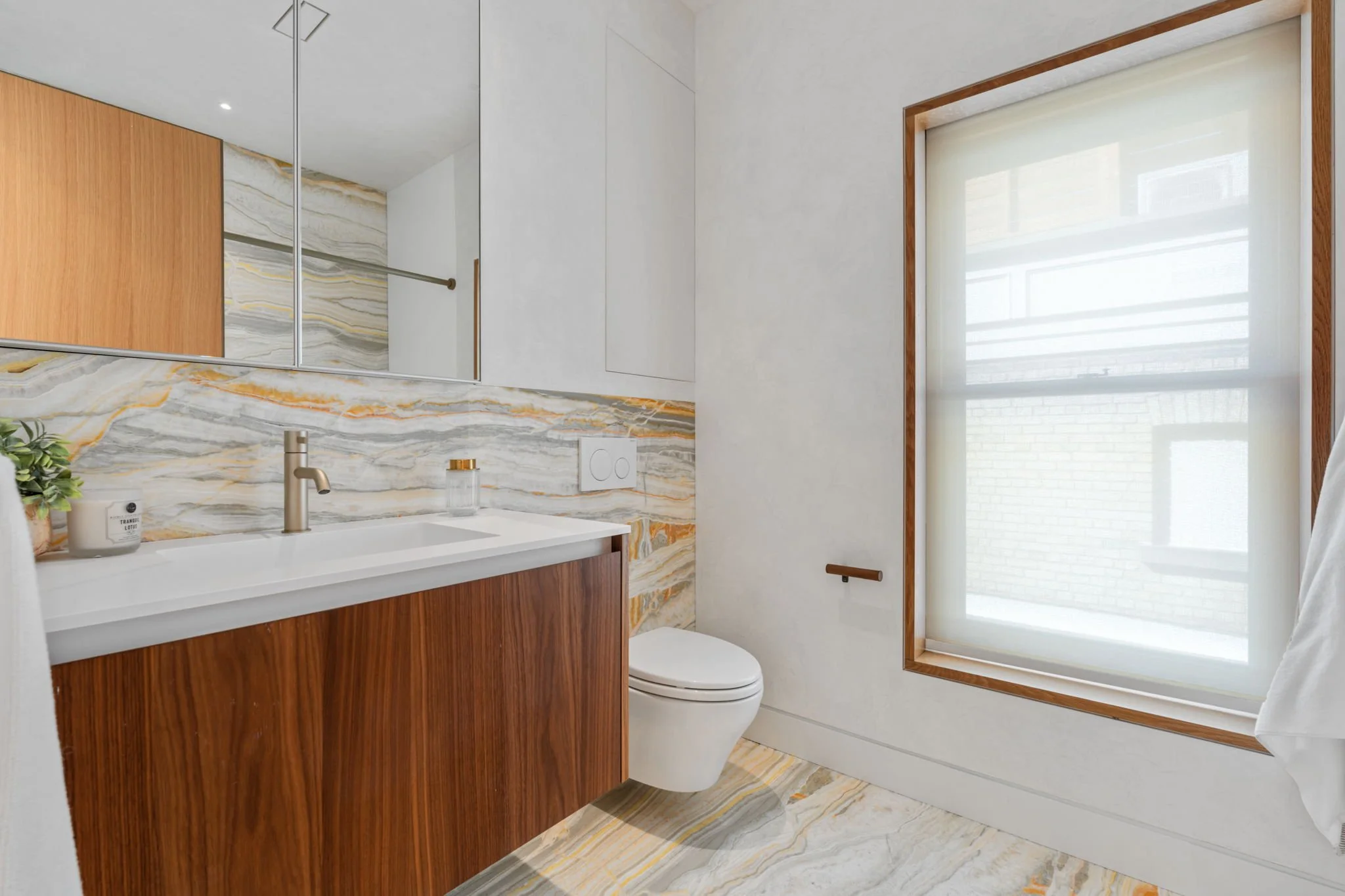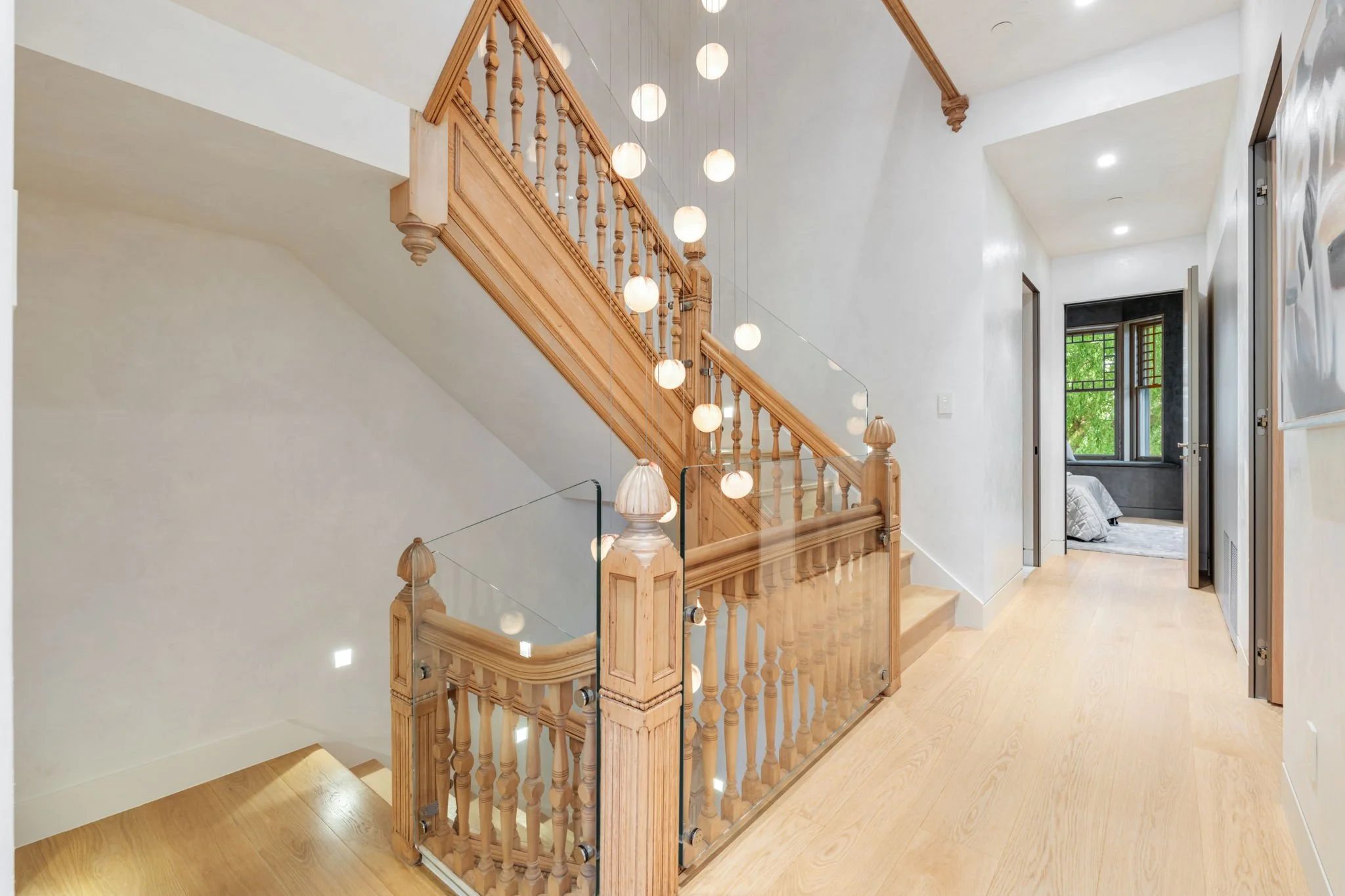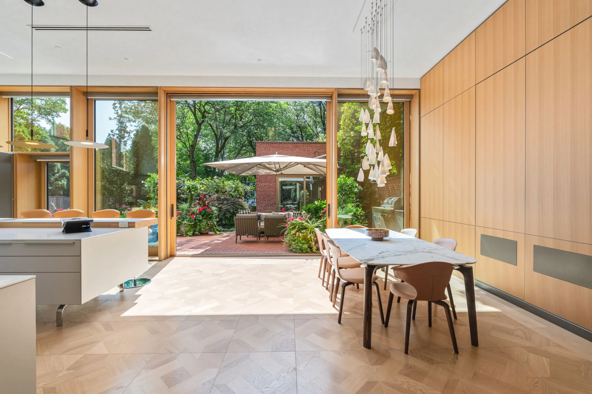 The opulent Queen Anne Revival exterior was preserved and melded with an ultra-contemporary interior renovation, creating a crown jewel of a residence. Jumping right off of the pages of any global interior design magazine, you will be astounded by the flow and appointments throughout. The restored foyer and staircase showcase the home's history, while the rest of the house embraces a contemporary aesthetic with white oak millwork and Roman clay plastered walls and ceiling. A seamless expansion adds five levels of extraordinary living space. The cloakroom, located off the foyer, sets the tone for the home's aesthetic: minimalism and functionality. Descending a few stairs from the foyer, you enter the expansive open-concept great room, encompassing living, dining, den, and eat-in kitchen areas. The chef's dream kitchen by Balthaup design with a full suite of Gaggenau appliances is bathed in natural light thanks to the floor-to-ceiling and wall-to-wall window system. Take the staircase or the elevator to the second-floor where you will find three bedrooms, a family room, and three full bathrooms. The entire 1370 square feet third floor is dedicated to the luxurious primary bedroom suite, complete with a dressing room and marvelous spa-like bathroom with marble tile by Salvatori and walk-out to the rooftop deck. A fourth-floor loft reveals a sun-drenched exercise room tucked away from the rest of the house. The lower level redefines expectations, boasting a media room, kitchenette, and state-of-the-art mechanical rooms. The garage features a vehicle turntable for effortless parking. The property sits on a sprawling lot and includes a fenced-in backyard with a detached pavilion, perfect for a yoga studio or artist's retreat. This outstanding city residence offers a harmonious blend of historical charm, contemporary elegance, and unparalleled comfort.