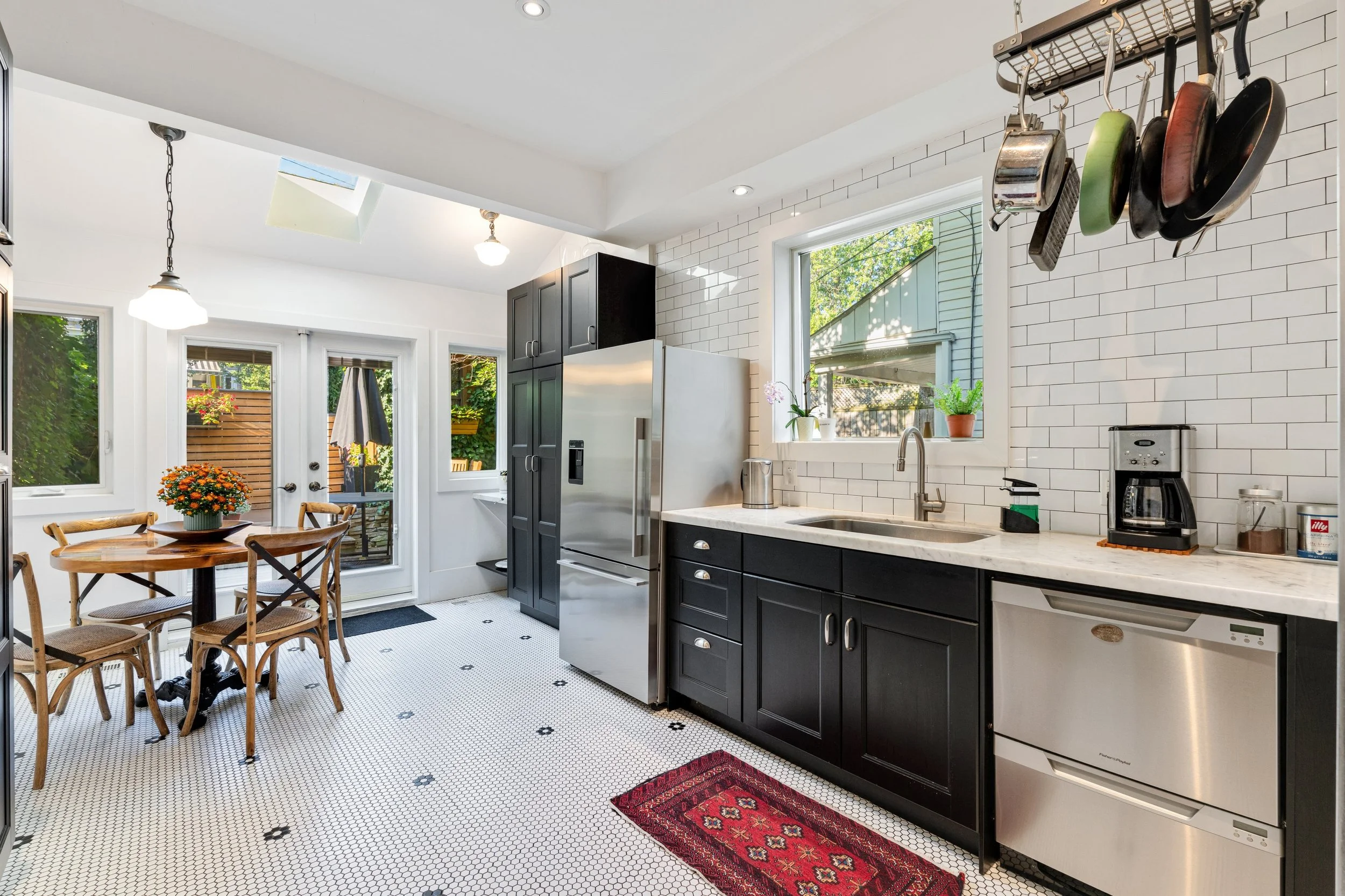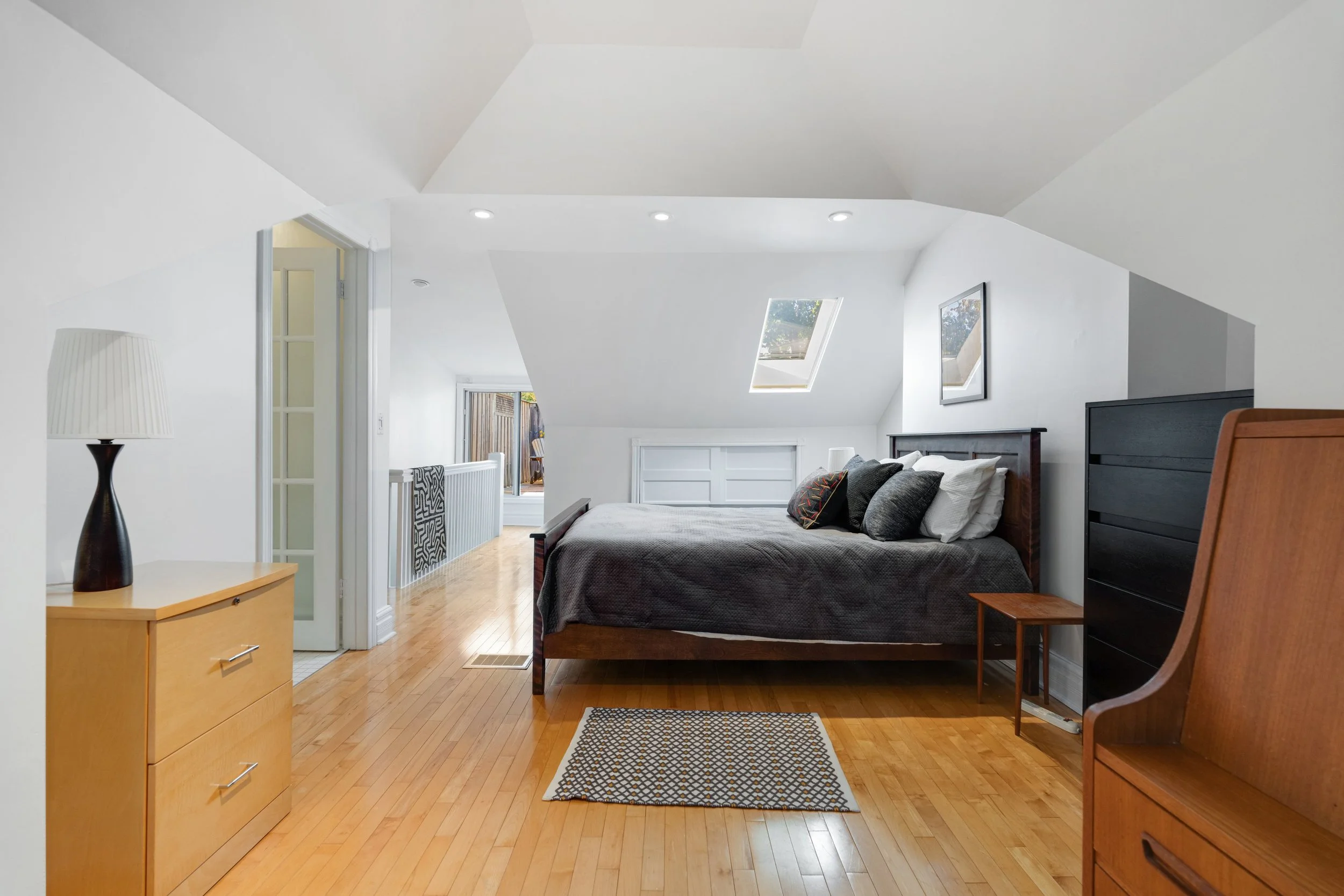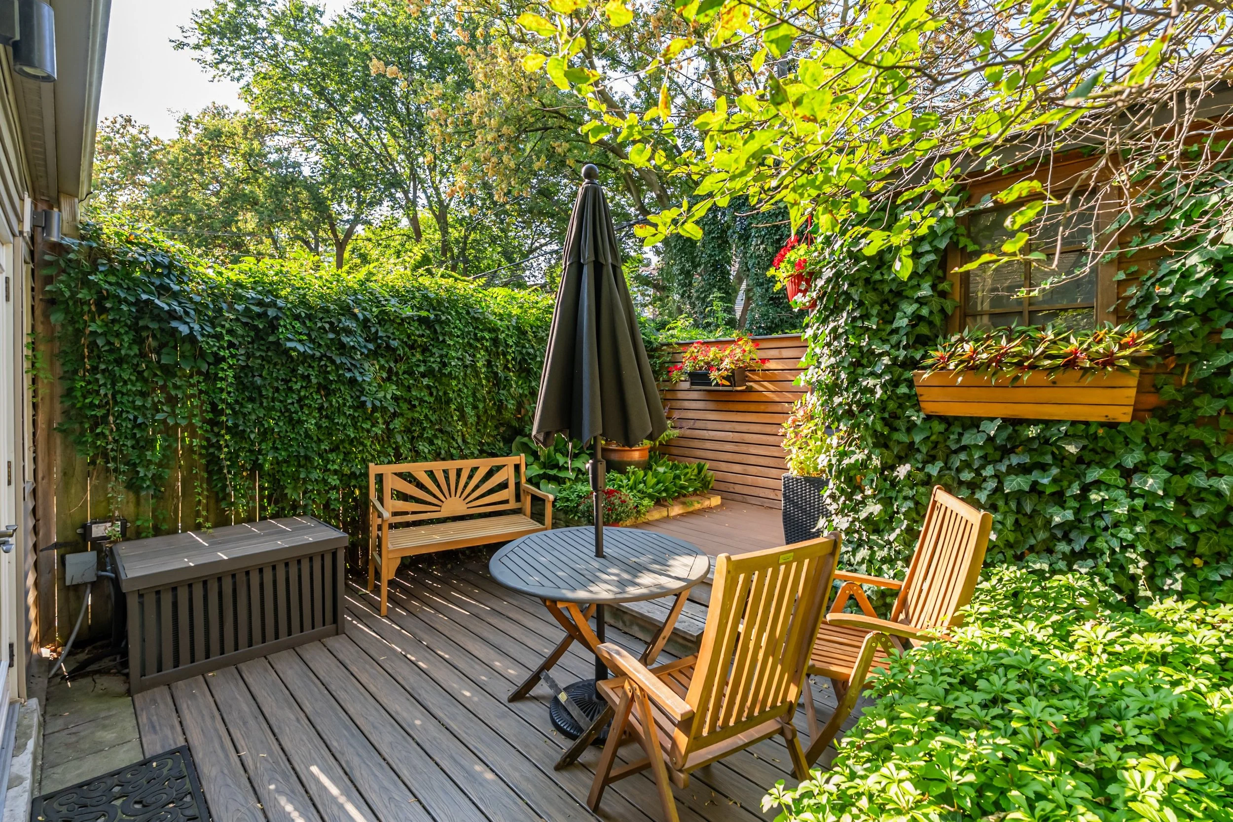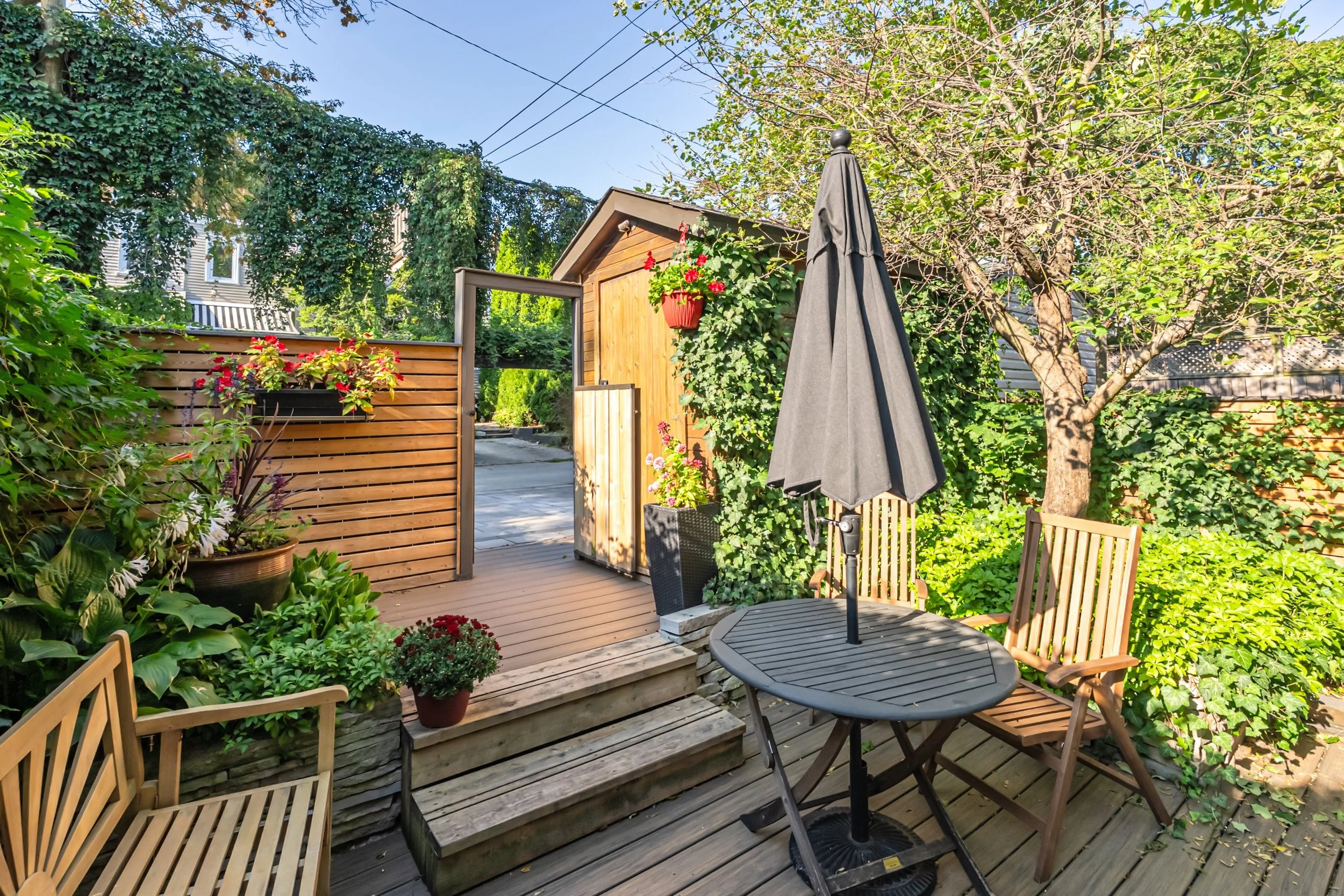 This 3+1 bedroom residence, set on a tranquil, tree-lined cul-de-sac, merges classic appeal with essential upgrades. It includes one-car parking with a custom-built shed (or parking for 2 cars) and a separate lower-level apartment with its own entrance, ideal for an in-law suite or extended family. Inside, the open-concept living and dining room is grounded by rich, dark-stained hardwood floors, crown moulding, and a decorative fireplace, creating an inviting and comfortable atmosphere. The kitchen, fit for a culinary enthusiast and designed with inspiration. It’s been completely modernized with Carrera marble countertops, Fisher & Paykel stainless steel appliances, a skylight, and glass doors that lead to a peaceful private back deck and parking.