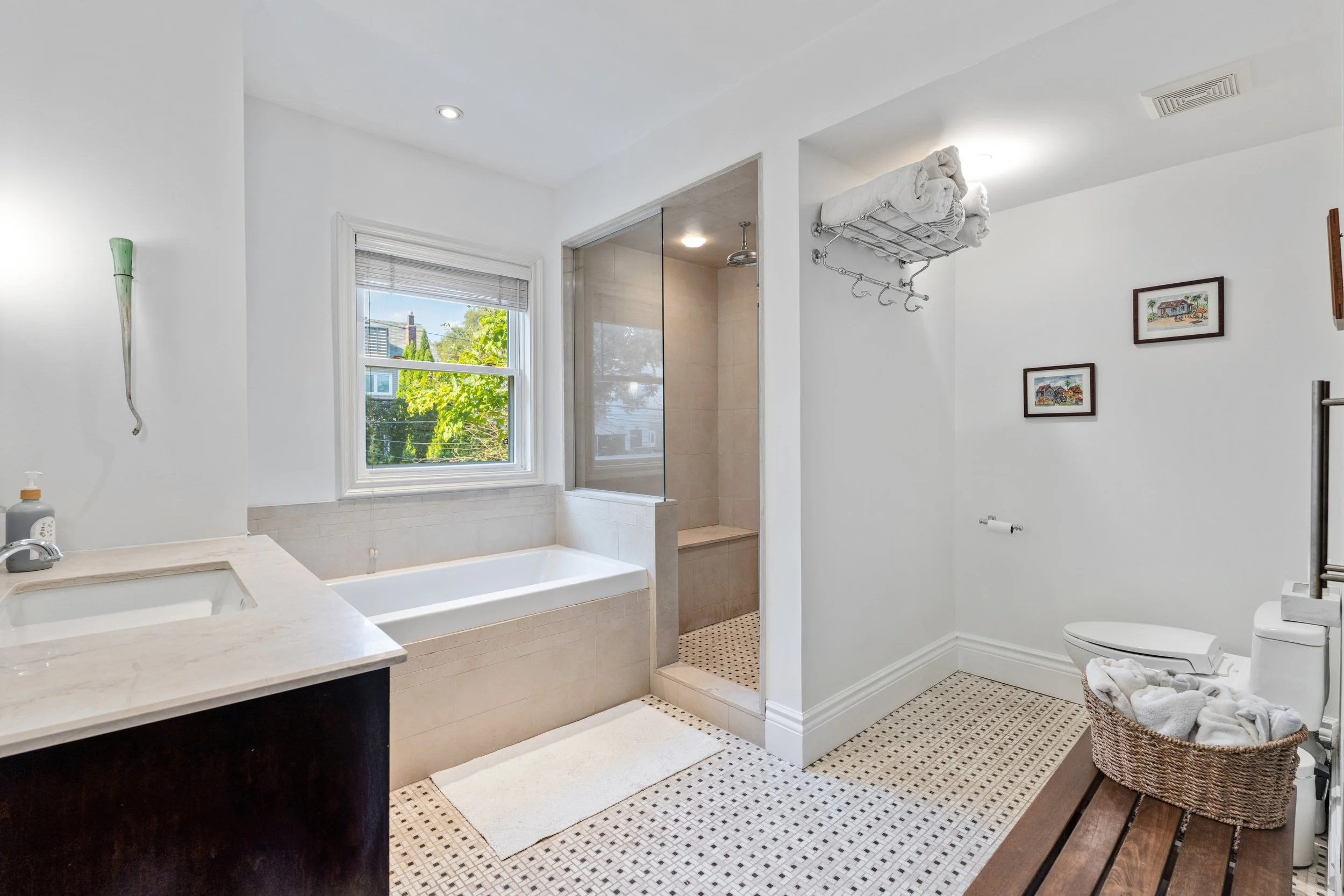 Upstairs, the sun-drenched primary bedroom features a private rooftop terrace, with an updated spa-inspired bathroom and clever storage solutions add to the home’s functionality and comfort.
