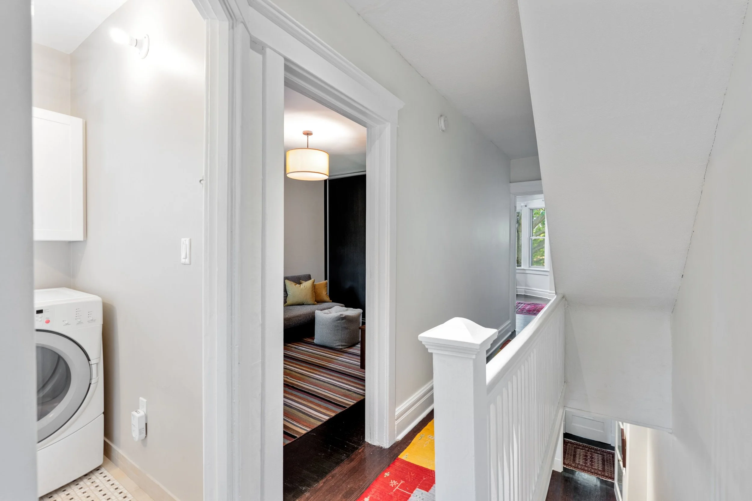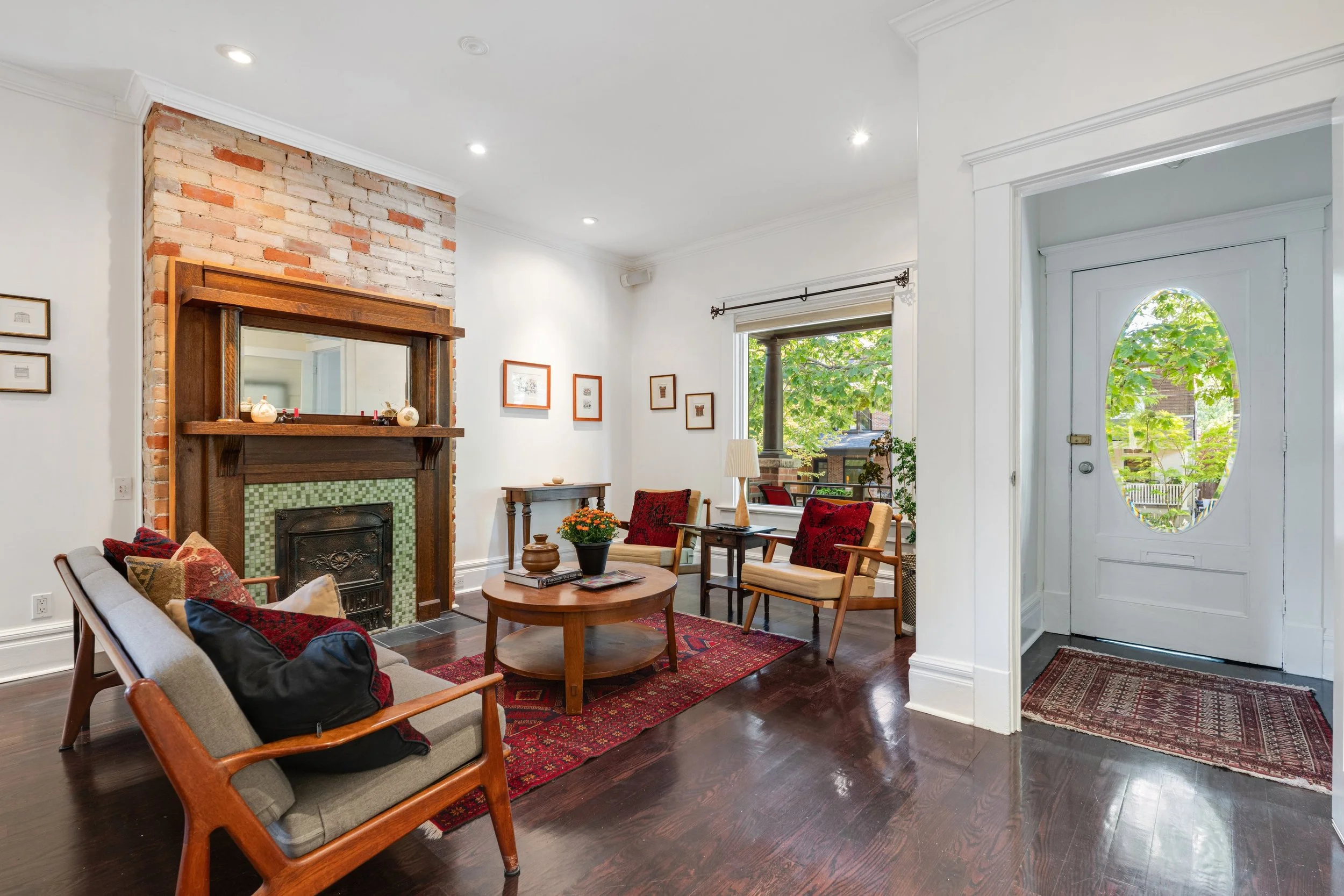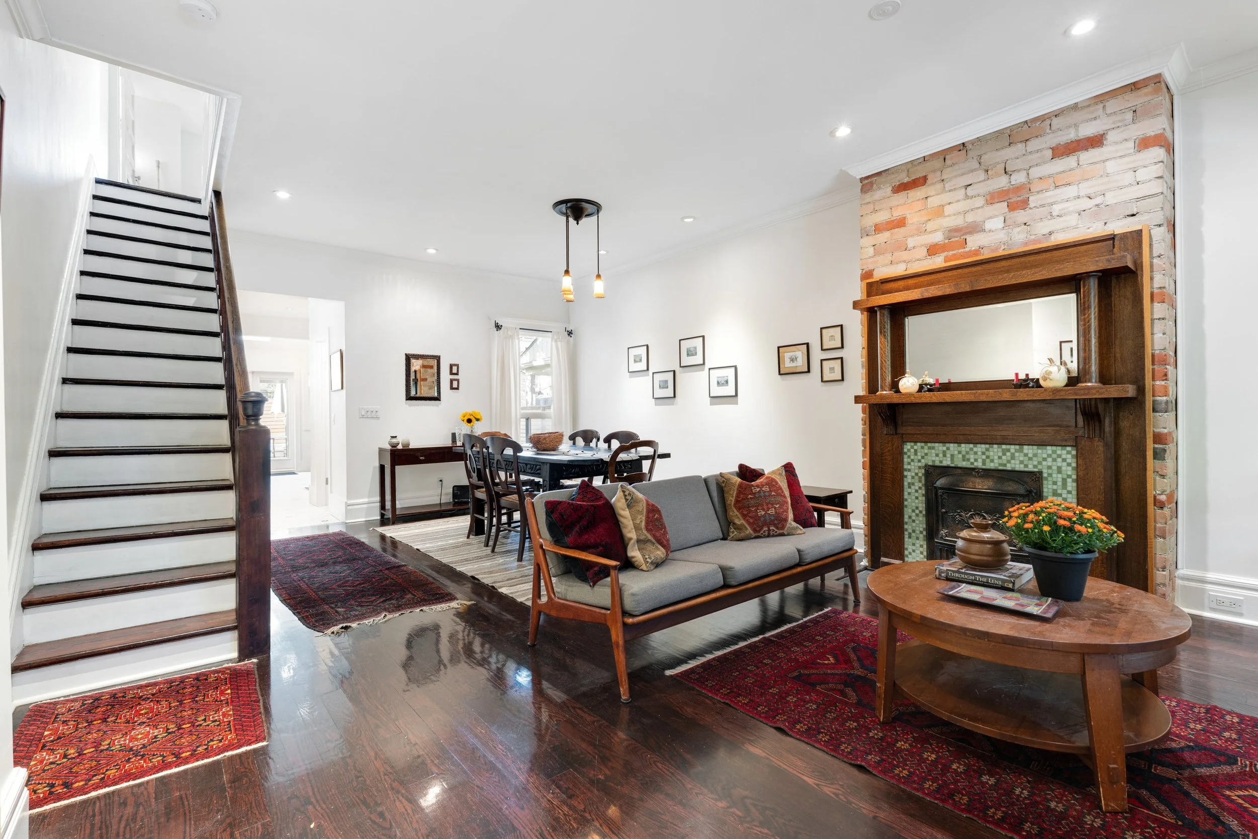 Experience unparalleled artistry in this meticulously updated and preserved semi-detached home, where high-end renovations have been respectful to the period. Elevated from the street, the newly relandscaped front yard showcases superb stonework, and the expansive porch provides a peaceful retreat for cool autumn evenings. It’s the perfect place to connect with neighbours and unwind.