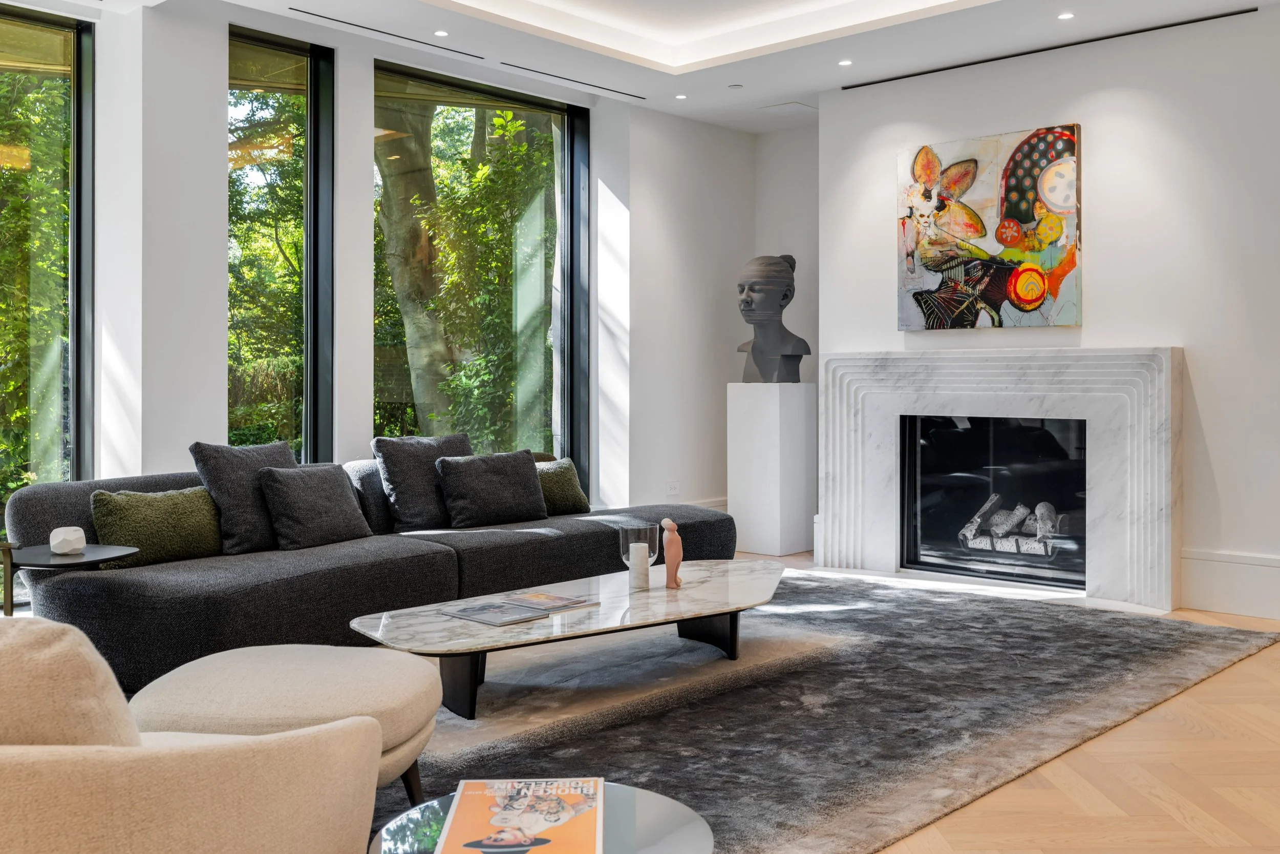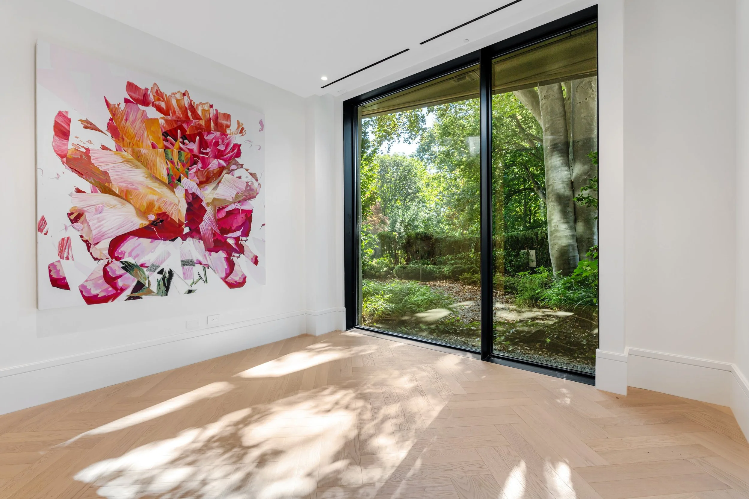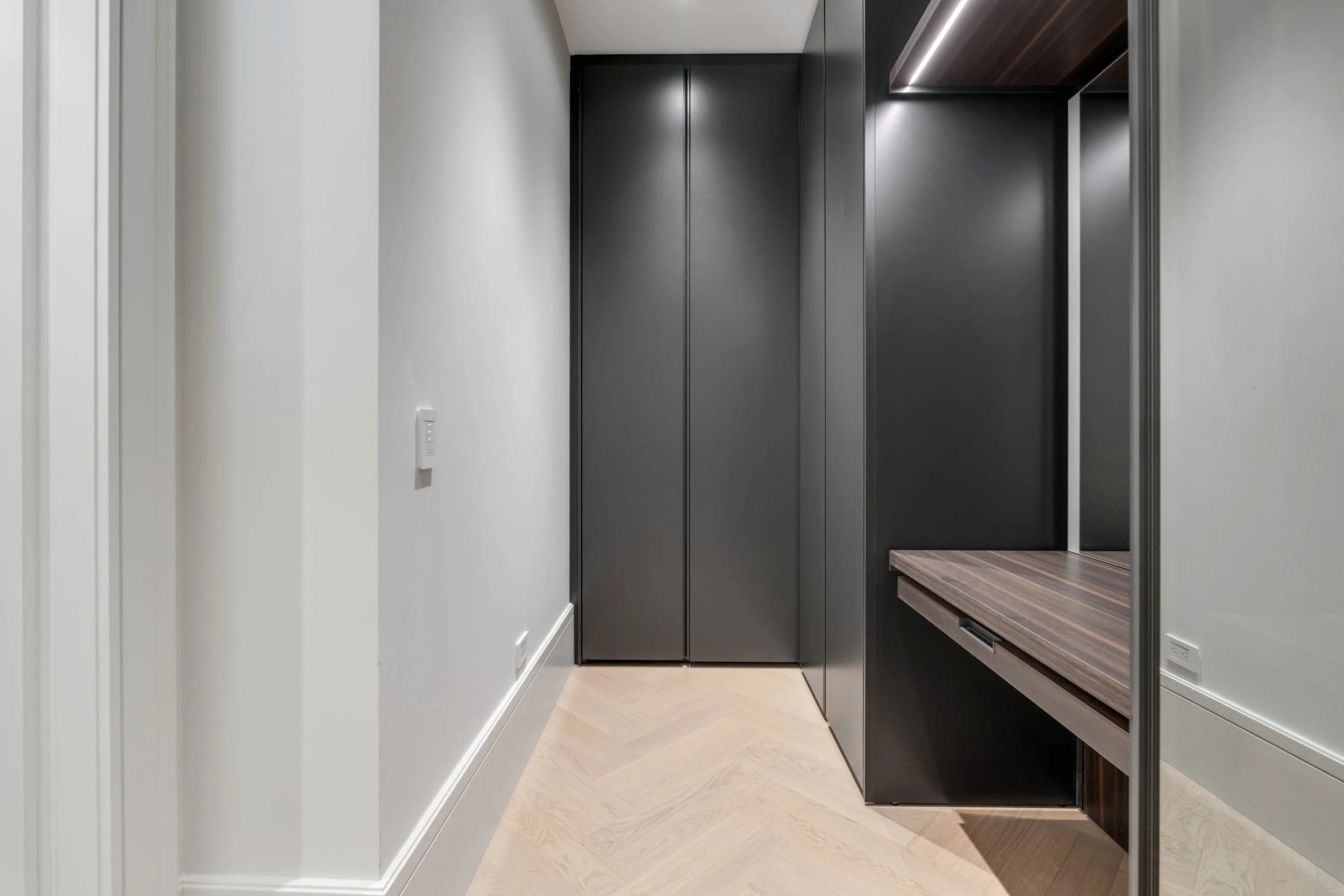 Prepare to be captivated by the elegant, open-concept living / dining / kitchen space. It boasts soaring ten-foot ceilings, rich herringbone flooring, and a chic fireplace, creating an atmosphere of polished comfort. The luxurious DaDa/Molteni cook's kitchen is an epicentre for lively gatherings, fully fitted with a suite of high-end Gaggenau appliances and anchored by a substantial central island with a breathtaking quartzite countertop. A piece of art in its own right.