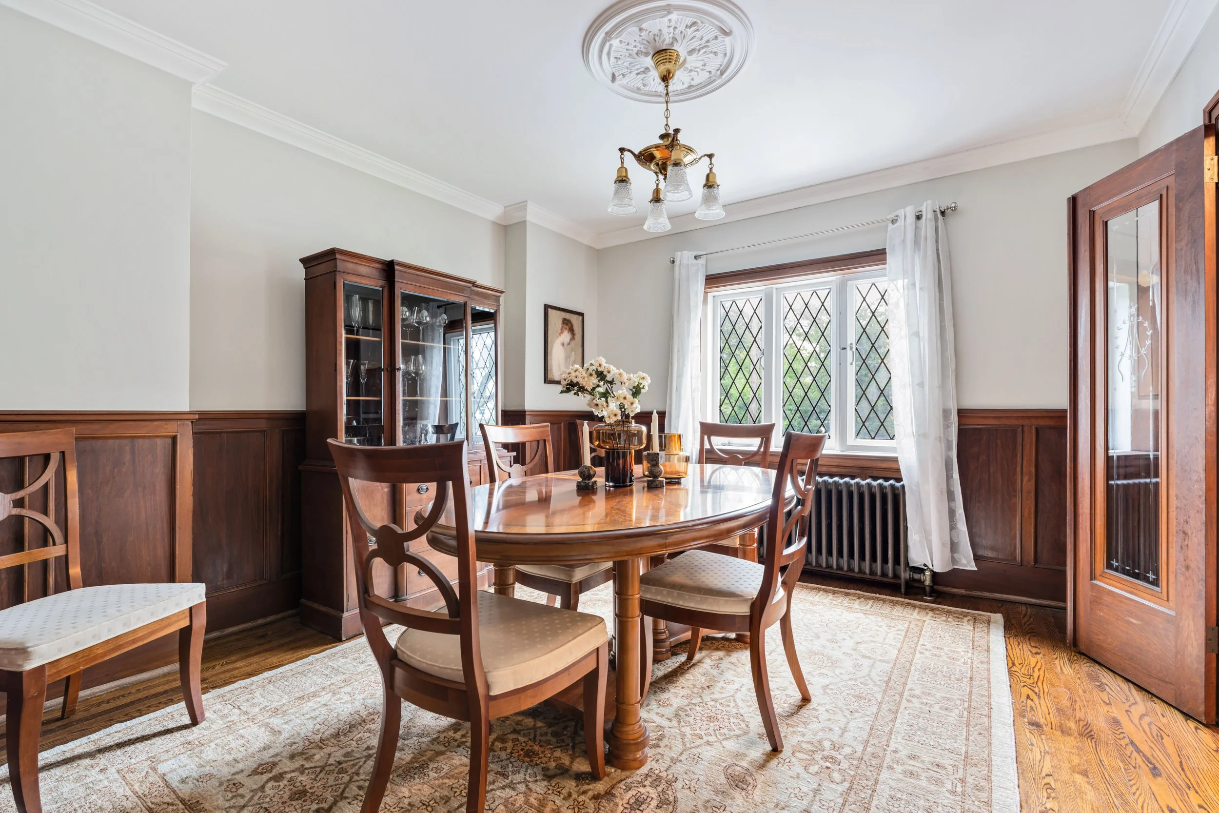 The classic principal rooms are ideal for holiday gatherings. A cozy study connects the living room to a spacious family room added in 1993, providing ample space for casual living. Direct walk-outs to the enchanting garden from the family room and kitchen. The updated kitchen in a soft colour palette is a culinary enthusiast’s delight, boasting ample cabinetry, granite countertops and the warmth of heated slate floors.