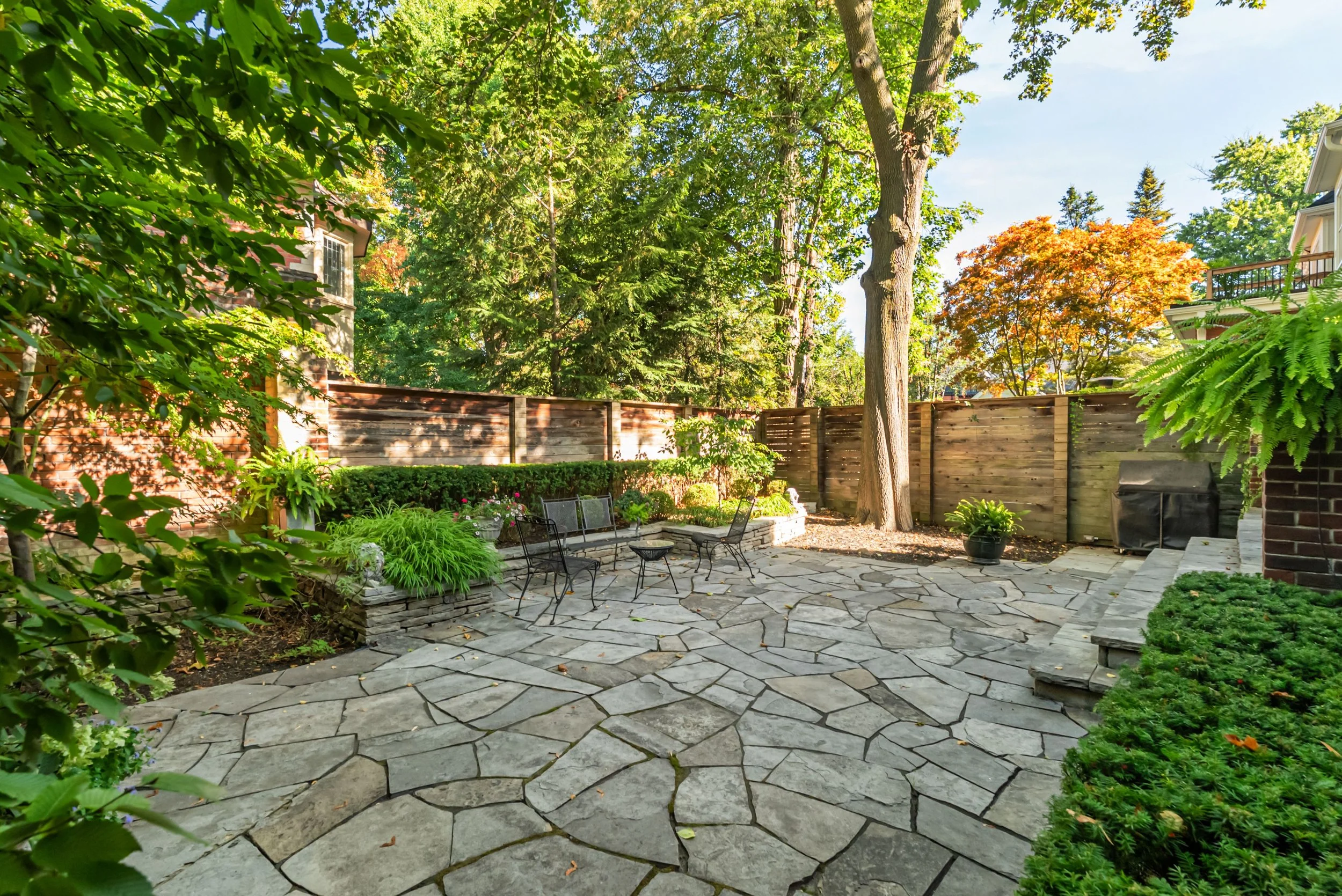 Enter the main floor and into the gracious foyer with mahogany-stained oak hardwood flooring and a grand staircase. The formal dining room, complete with a fireplace, sets the stage for cherished family moments. A gourmet kitchen, boasting Calacatta gold countertops and premium stainless-steel appliances, flows seamlessly into the breakfast area and main floor family room. From here, step out to the low-maintenance urban garden stone patio terraces. The main level also features a refined double living room with a gas fireplace, a powder room with stylish fixtures. This is an exceptional residence for entertaining.