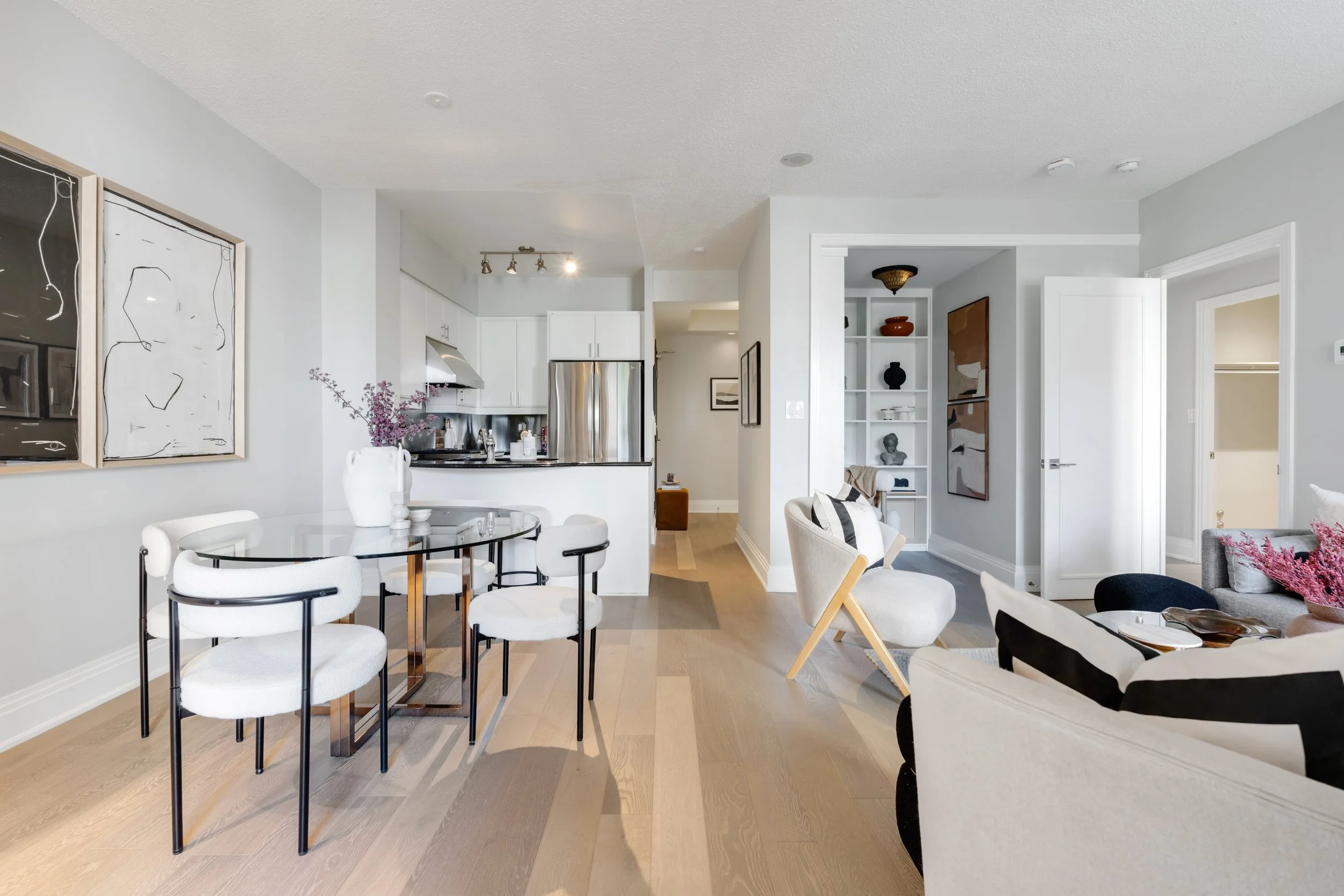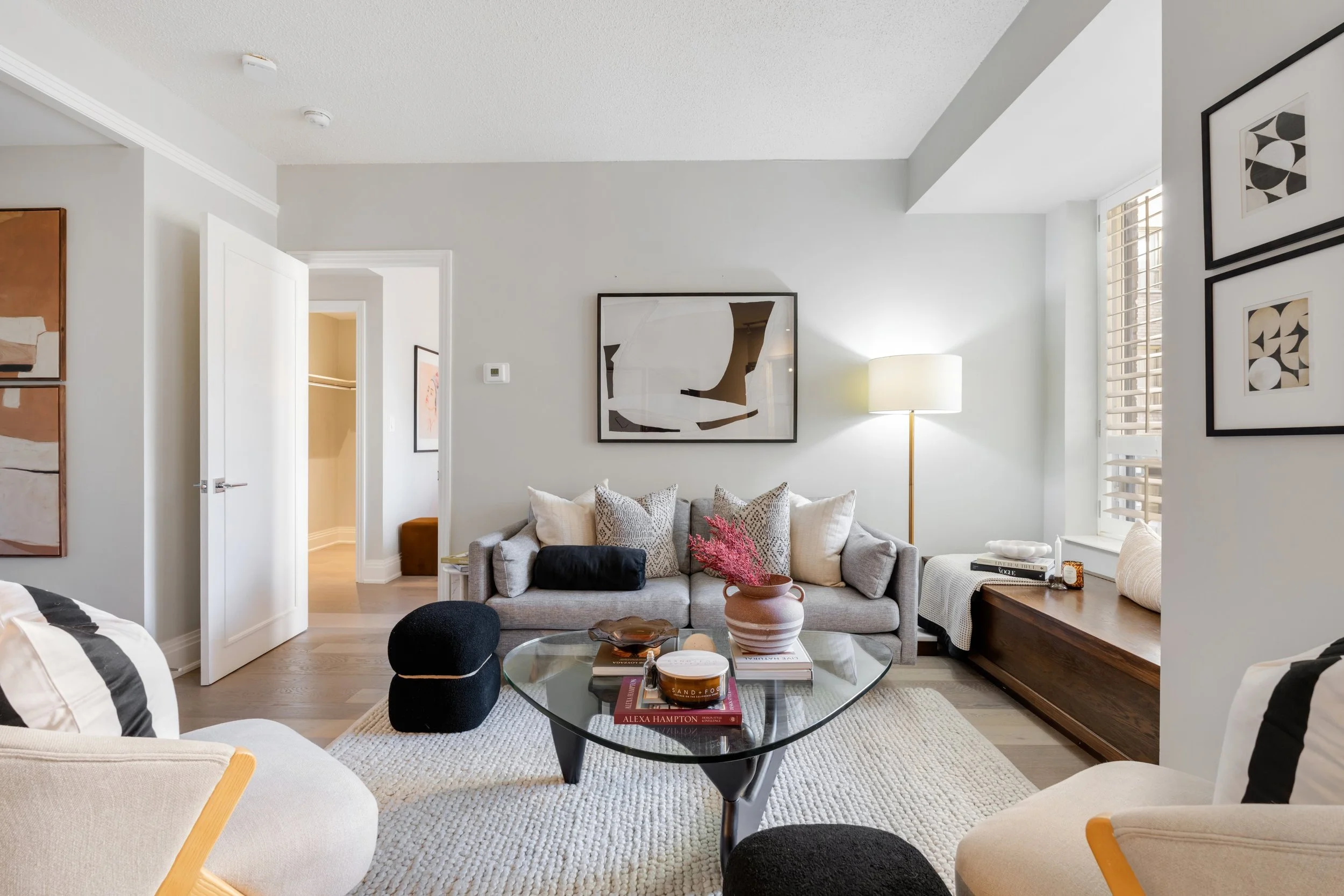 800 square foot suite of fabulous! Thoughtfully designed to blend modern luxury with timeless elegance. The open-concept layout is an entertainer's delight, featuring a cook's kitchen with gas stove, granite countertops, and a breakfast counter that overlooks the combined living and dining room, which includes a cozy gas fireplace. Walk-out to the large balcony with gas BBQ hookup. The handy den provides a small workspace and an abundance of custom shelving. Newer engineered hardwood flooring. Finally, a primary bedroom large enough for a king-sized bed. Hey, you are living in the shopping capital of Canada. The walk-in closet has space for the latest fashions from the Mink Mile immediately to the south. The adjoining massive, marble-clad bathroom is a spa-like retreat, complete with a deep soaking tub for ultimate relaxation. Situated on the quiet east side of the building with the leafy street and residences along Hazelton beyond. Exclusive boutique building with only 60 residences, this condo offers the ultimate in sophisticated and carefree urban living. One parking space and a locker complete the picture. You'll find yourself just a short stroll from Yorkville Village, Whole Foods, fine dining, and world-class shops. Cultural gems like the Royal Ontario Museum, the Gardiner Museum, and the Bata Shoe Museum are all nearby, as are the University of Toronto and Queen's Park. The building provides top-tier amenities, including concierge, valet car service, a state-of-the-art fitness centre on the second floor, a rejuvenating sauna, a stylish party room, and a guest suite. This luxury building ensures a refined lifestyle with maintenance fees that cover every essential detail, including high speed Bell Fibe Internet with a TV package, water, gas, heat, electricity, and central air conditioning.